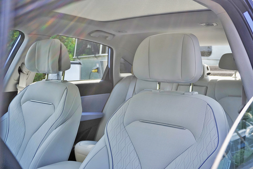 尽管坐垫长度足够,也无法在纵向承托住双腿,解决方式是座椅尽量往后调,但考虑到方向盘不支持前后调节,所以对个子一米七以上的人群都不算友好,在量产车交付之前,主驾座椅前端腿托区域有待调整。