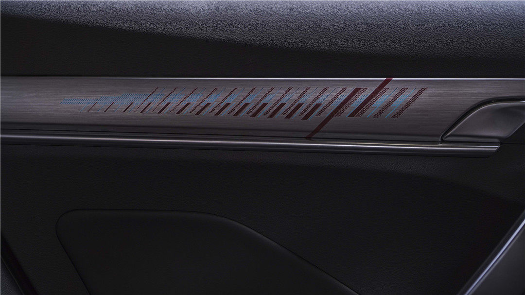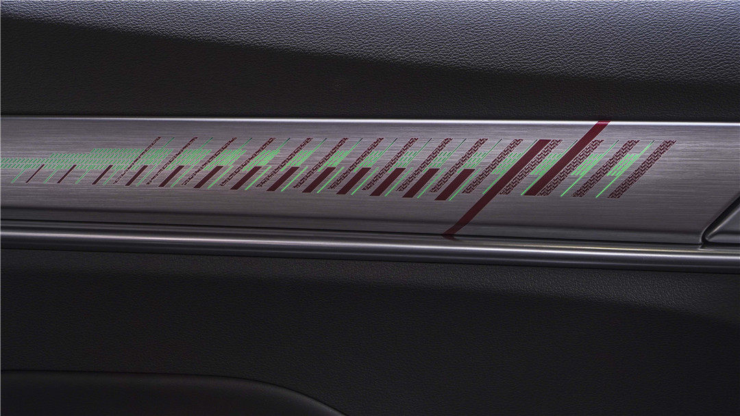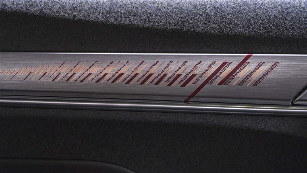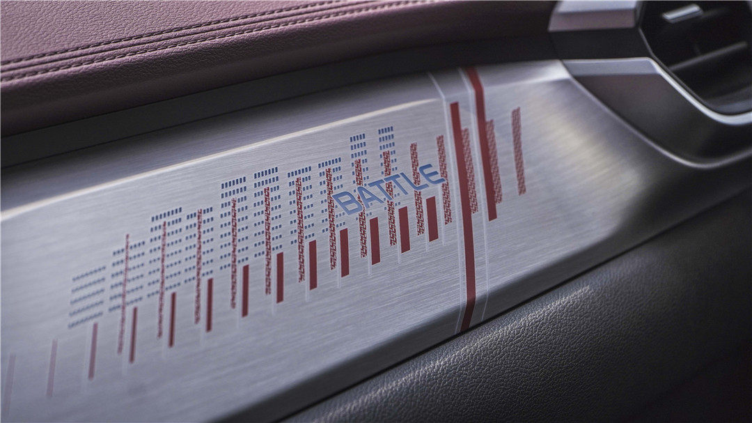 凑近看会发现中控饰板采用了拉丝工艺的处理,上方还伴有“BATTLE”字样的点缀。
