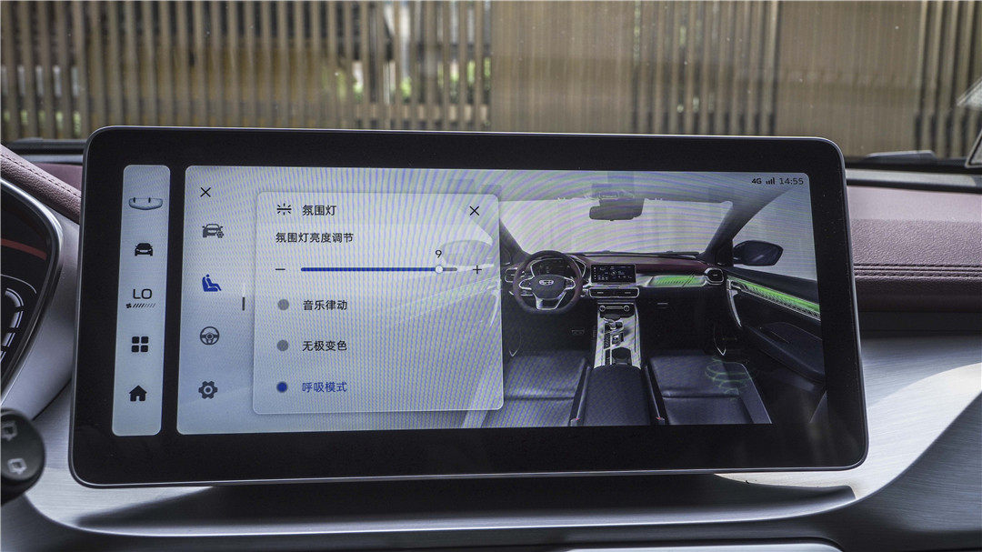 而内里则配备72色氛围灯,带有呼吸模式、随驾驶模式联动、随车速、音乐律动。只是显示品质就略显粗俗,无法与百万豪车的高档次氛围灯相提并论。