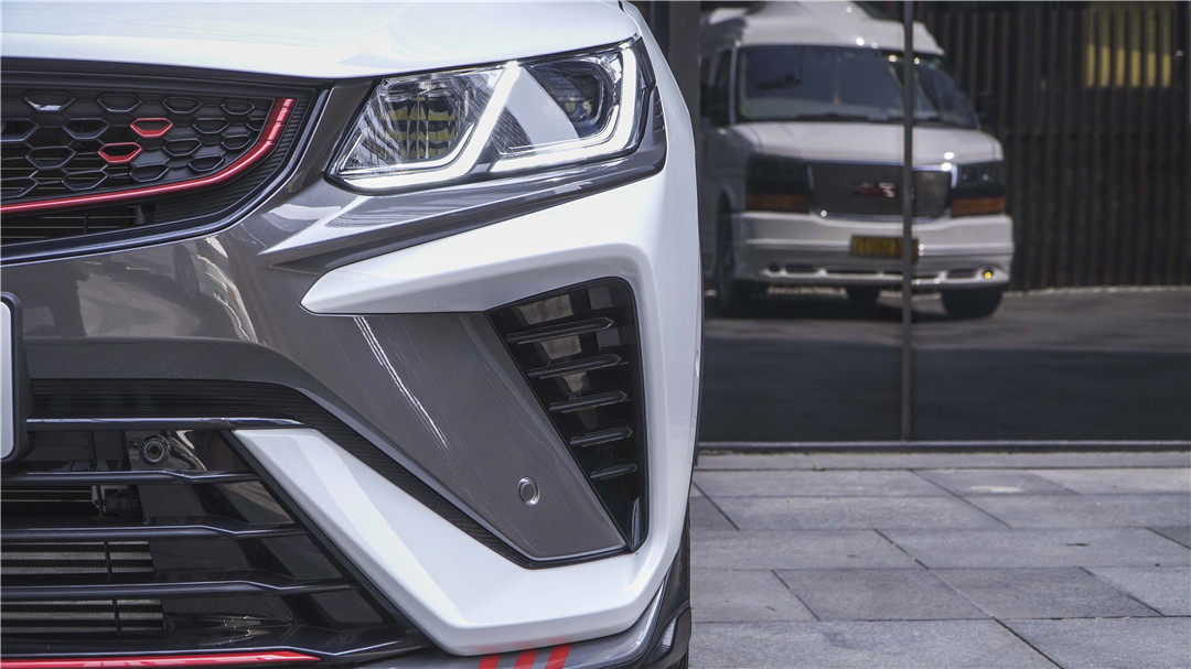 而两侧的导风槽并不是密闭的装饰件,开通式设计让经过此处的气流能够引流至车侧,从而减低前部的风阻压力。