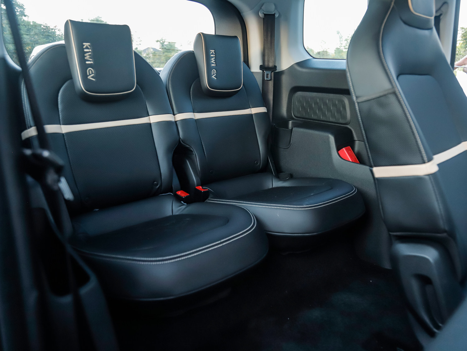 进出后排的步骤很简单,只要拉起副驾驶座椅靠背上的把手,然后将座椅往前推,就能腾出一个比较大的空间。由于车顶线条比较平直,所以头部空间自然不用担心,但是腿部空间捉襟见肘,另外后排坐起来也算不上舒适,主要靠背较直,而且坐垫较低,有点坐在小板凳上的感觉,所以后排应急的作用更大。