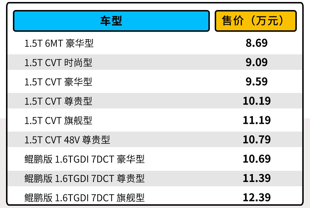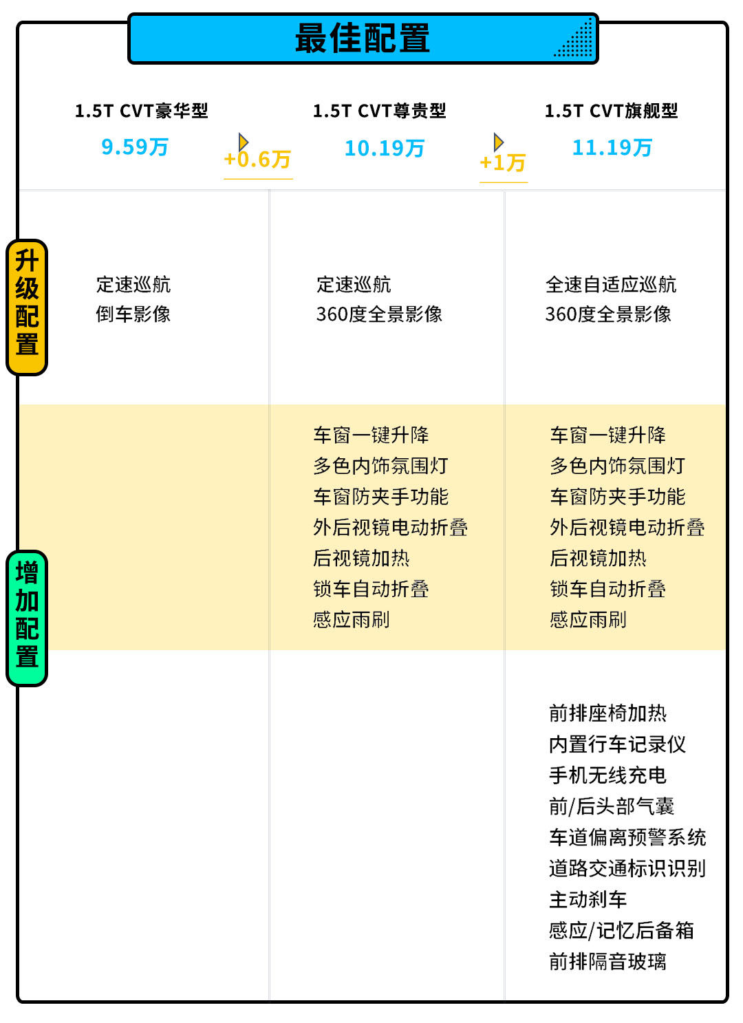 另外在相同配置下,1.6T车型比1.5T车型贵了1.2万元左右,如果对动力有较高需求,那么推荐1.6T车型。