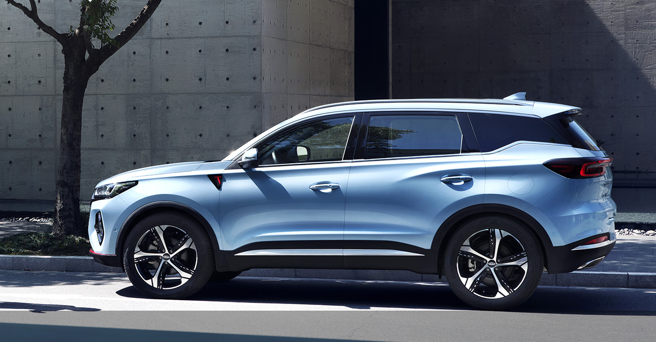 新车侧面的造型和瑞虎7基本保持一致,不过换装了造型更加犀利的五辐式轮毂。悬浮式的车顶继续保留,配备香草蓝车漆,时尚感扑面。
