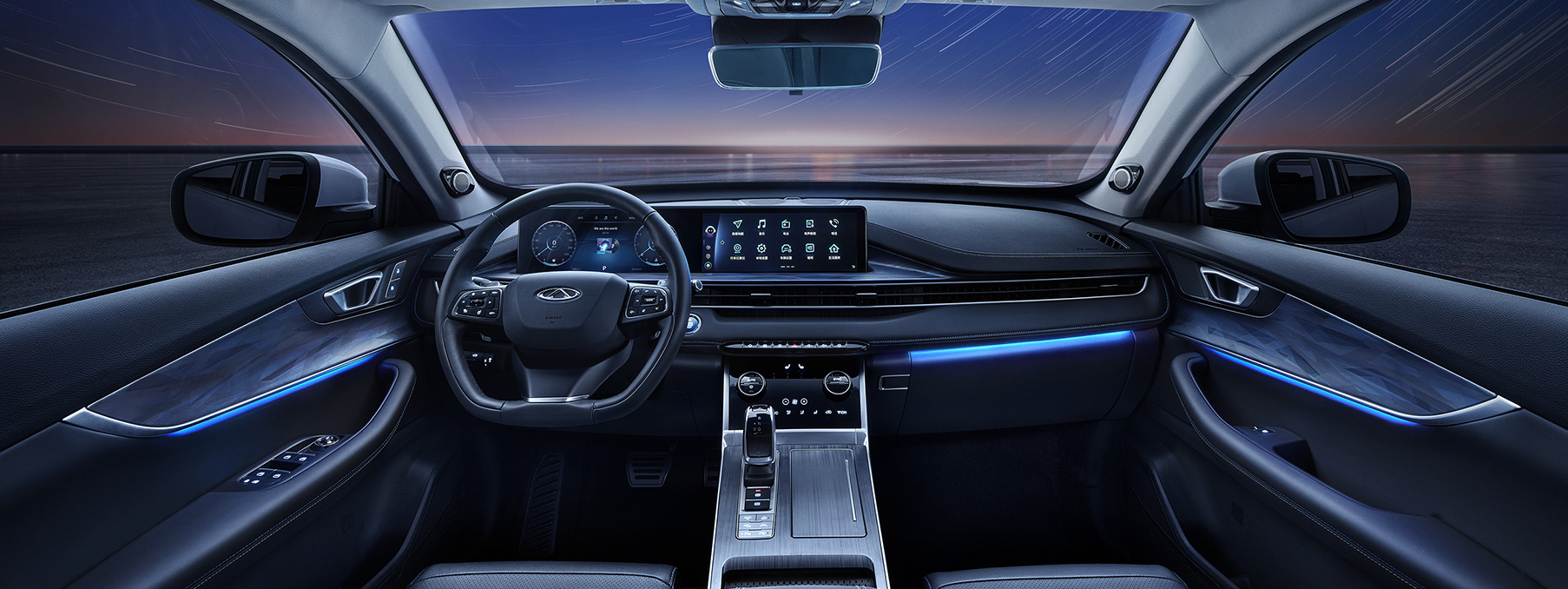 传动系统方面,1.5T发动机匹配6MT和CVT无极变速箱(模拟9挡),1.6T发动机匹配7速湿式双离合变速箱。另外,瑞虎7 PLUS还提供一套1.5TCI+48V轻混系统的动力总成,最大综合功率可达126kW,官方百公里油耗5.9L/100km。