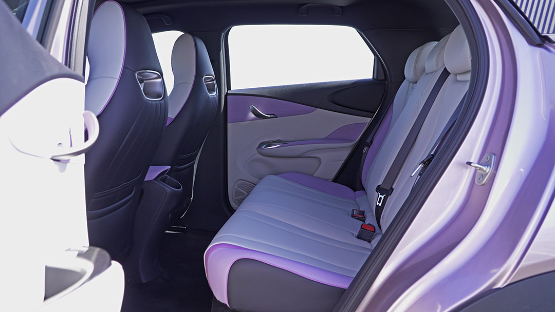 在同级中,2700mm的轴距让后排空间称得上宽敞,170cm个子的成年人坐在后排腿部超过1拳半,再加上全平的地台和全景天窗的加持,车内的压抑感并不明显。
