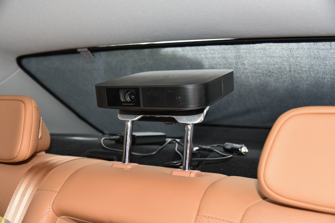 当中的主角莫过于是小鹏x极米的车载定制超清投影仪套装,其可安装在后排中央头枕位置处,并且接上专属的电源、挂上前投影幕布后,即可收获接近50寸电视的影音体验。再加上小鹏P5配备的太阳能智能车顶能在光照条件合适的情况下以最大60W的发电功率为低压车载电器供电,用户不必担心长时间的车内娱乐会导致电量大量消耗,实在是相当细心且实用的设计。