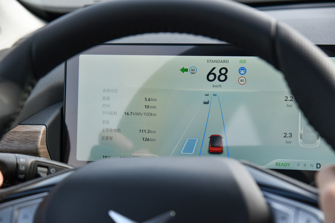 而且车辆还会将监测到的路面状况实时显示在中控屏和液晶仪表盘上,当系统计算认为当前车道并非最快且具备变道条件时,小鹏P5还会自动打转向灯变道,完成超车和并线等操作,全过程无需人工介入。实际表现中,其线性的加减速和转向,稳得就像一位驾龄丰富的“老司机”,这是让教授感到较为惊喜的地方。