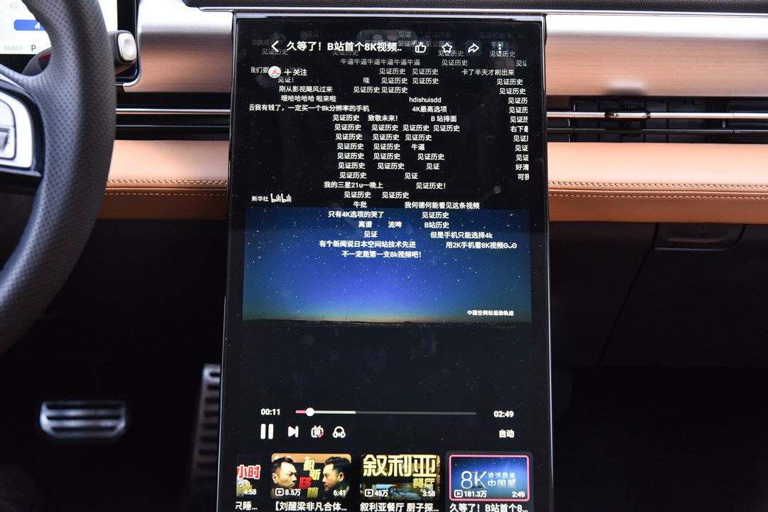 而当你是在车上等人等场景时,悬浮全触控屏还能运行哔哩哔哩、虎牙直播、优酷视频等影音APP来打发时间,丰富多彩的视听体验很符合当下年轻消费者的生活习惯。