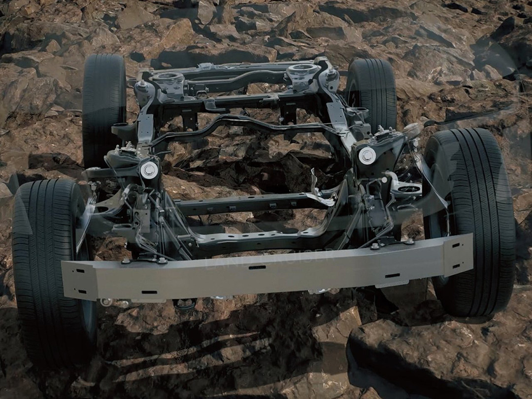 新路巡还是TNGA-F平台的首款非承载式车型,新陆巡对传动系统做了下降28mm和后移70mm的方案,以求更低的车辆重心和前后达到53.5:46.5的配重比,包括全新焊接技术减重200kg、电控E-KDSS系统等。