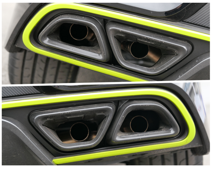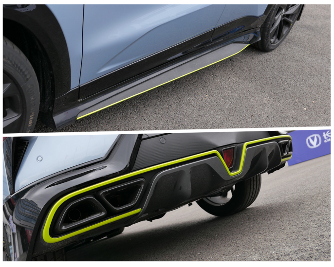 包括车侧的侧裙和车尾底部的扩散器运动套件,也都加入了荧光元素,实车来看非常抢眼。