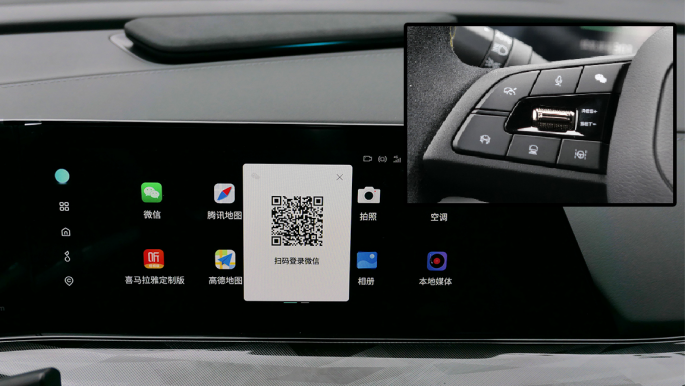 车机比较特别的功能还得是微信!这是腾讯专门为长安定制开发的,甚至还在方向盘左侧设立了专属微信一键开启的按键,简直是手机党的福音。