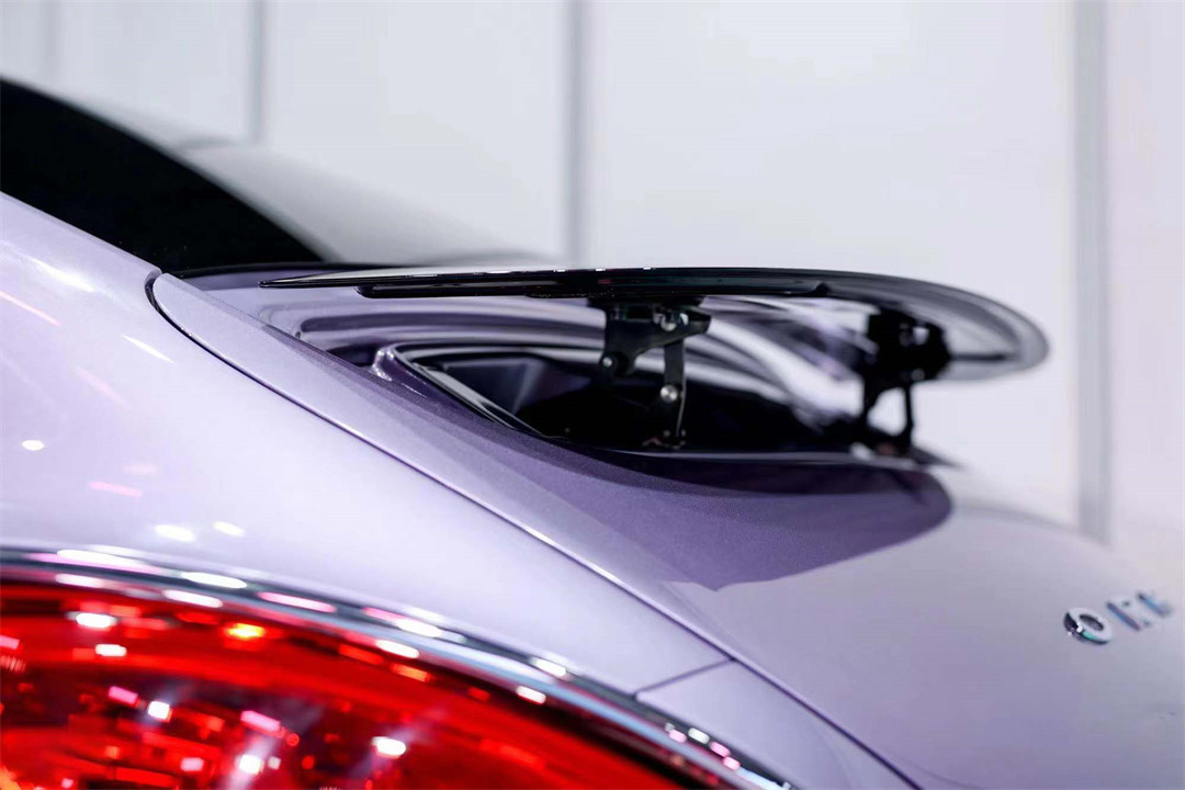 但来到尾部,高角度的溜背造型搭配上电动调节尾翼的设计,看起来又有几分甲壳虫的身影。
