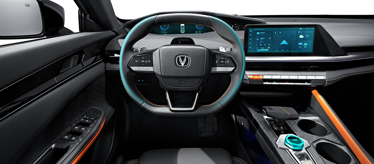 同时还具备双D型运动方向盘、触感细腻的拼色座椅、战机推杆换挡等设计的加入,都成为了长安UNI-V座舱的“性能标签”,使人无时无刻拥有驾驶它的欲望。