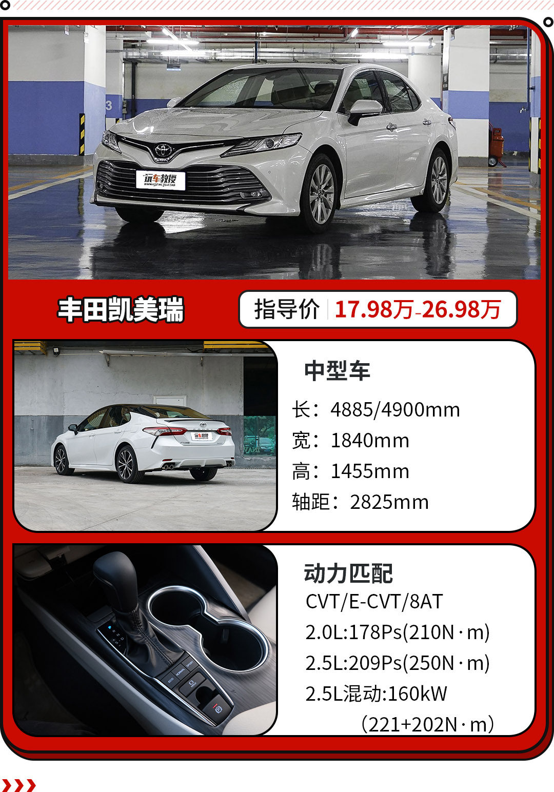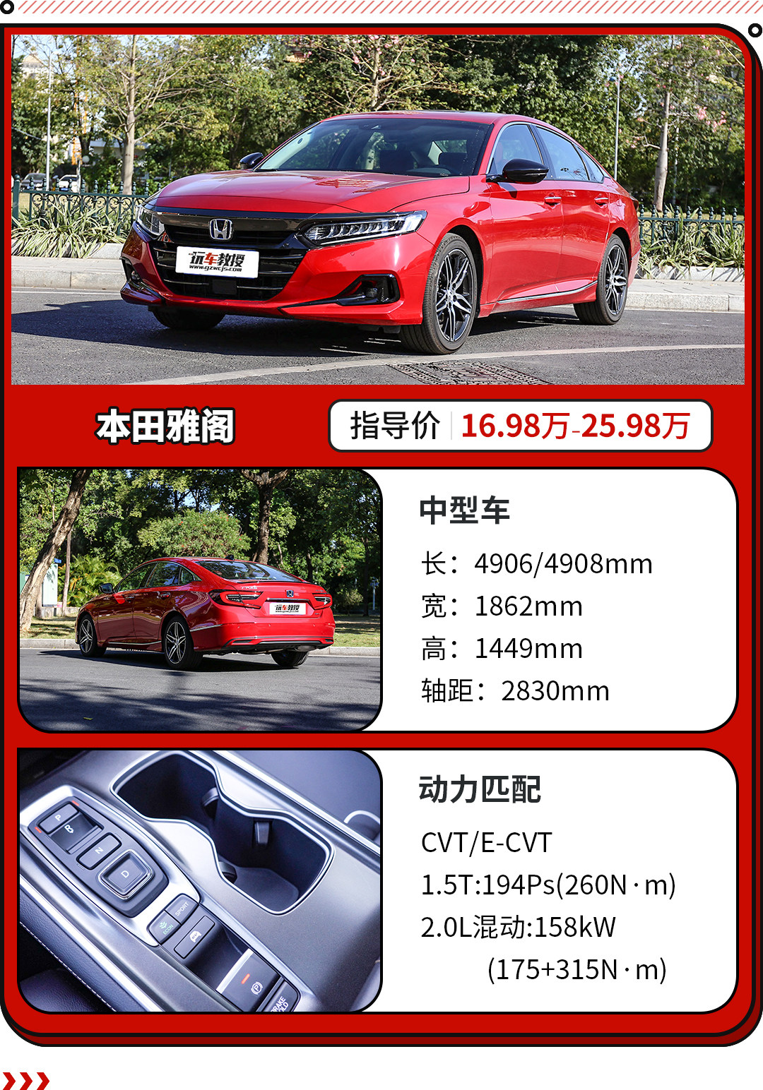 在国内中型级轿车市场,日系车三巨头——日产、丰田和本田经过长时间的产品发展和市场反馈,其中型轿车都拥有不错的竞争力和相应的市场份额。