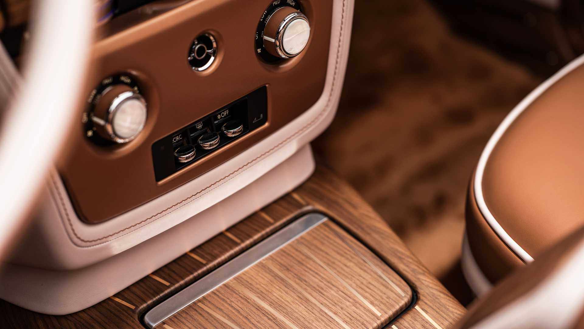 劳斯莱斯两门设计具有较高的辨识度,并且金钱气息十足的“金腰线”也同样保留,玫瑰金车身腰线与独特的车漆涂装融为一体,处处细节彰显奢华。