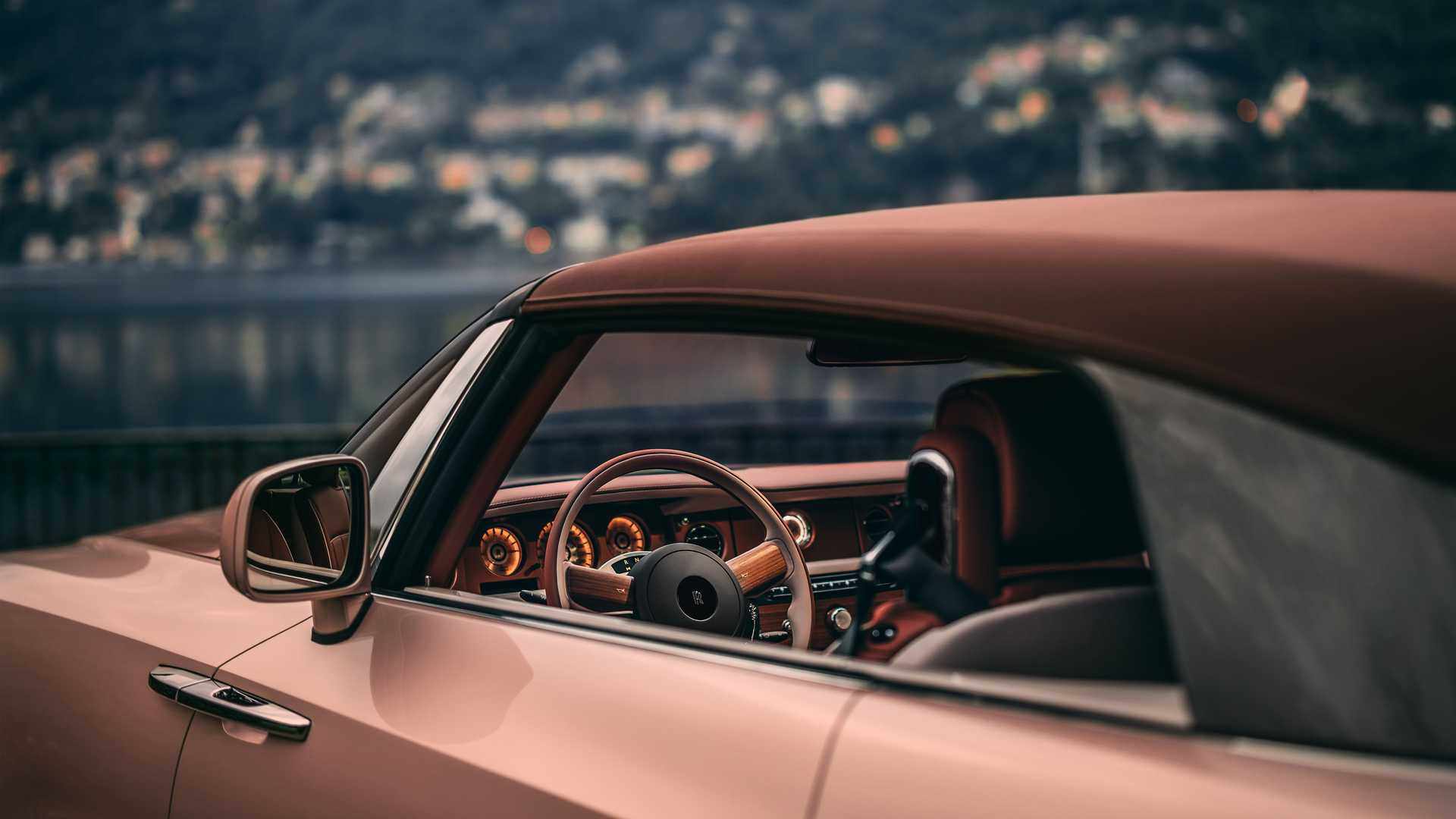 Drophead形式车身十分优雅,并且车身处采用了独特的玫瑰金+青铜色作为车身主体颜色,由于车漆内混合了白色+青铜色的薄片,在不同的光线下显示出不一样的质感。