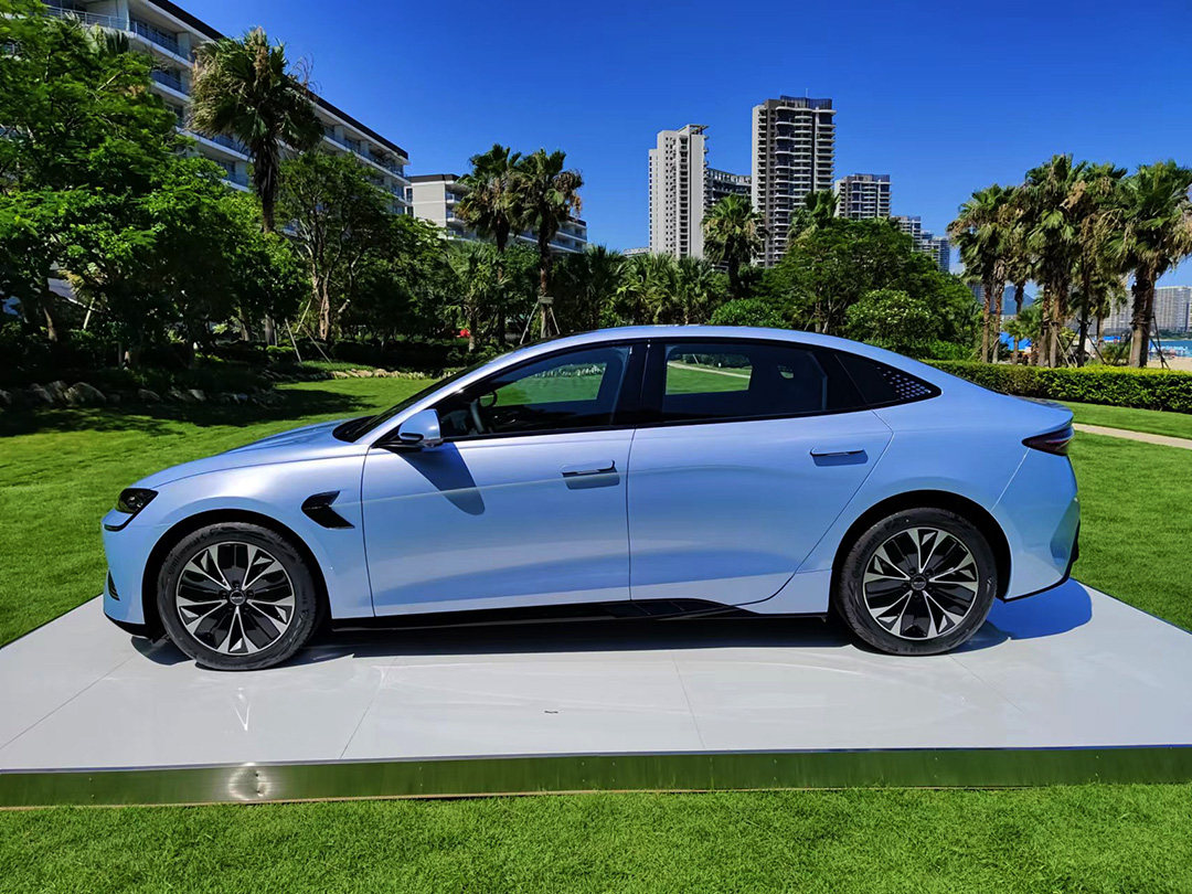 CTB技术的简单解释:一种能简化电池包结构并且增加车身强度、增加安全性;官方称海豹白车身抗扭刚度达到40500N·m/°,已经接近奔驰S级水平。车身侧面是熟悉的溜背配一条彰显运动的肩线,侧裙类似鱼鳞造型,车尾下方还有模仿海豹尾鳍打造了一套空气动力效果的后包围。个人认为,这个设计意义大于实用意义。