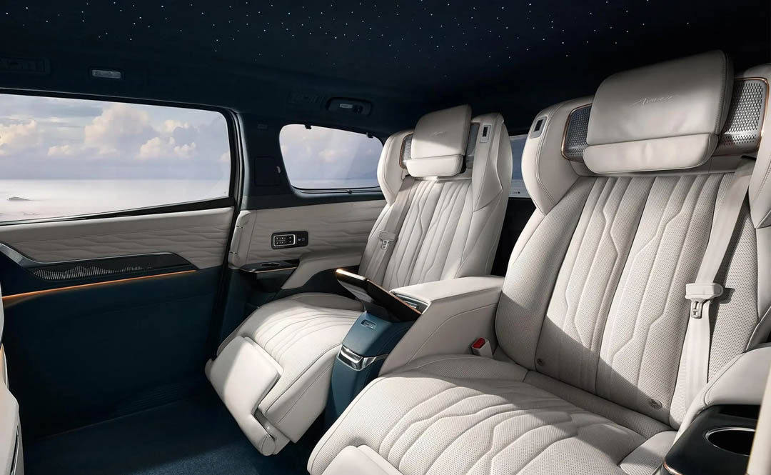 四座版最大亮点是配备可一键可升降的智慧幕墙,第一二排之间起到了隔断的作用,私密空间留给了第二排。而且第二排两张豪华座椅独立,带腿托和按摩系统,还能享受劳斯莱斯同款星空顶。这些都是四座版独占配置。搭载型号为LXH的2.0T发动机,匹配9AT变速箱和48V轻混系统。最大功率为169kW,和现款车型使用的发动机相同。