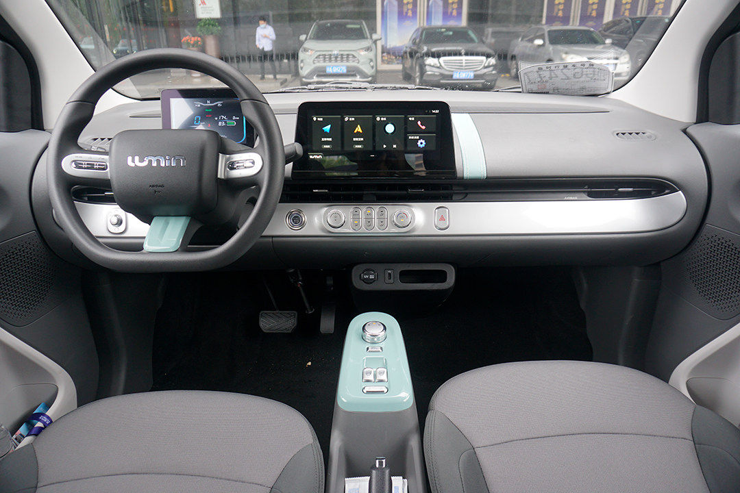 内饰是标准的轿车风格:中控台分区明确。加入了10.25英寸全液晶高清智能触控大屏,支持常用娱乐及导航等功能。其采用高强度钢打造的吸能式车身,能够在碰撞发生时,更大程度保证车内的生存空间。同时标配双安全气囊,达到了普通乘用车的水平。麻雀虽小,五脏俱全,这就是糯玉米跟宏光MINIEV最大的不同。