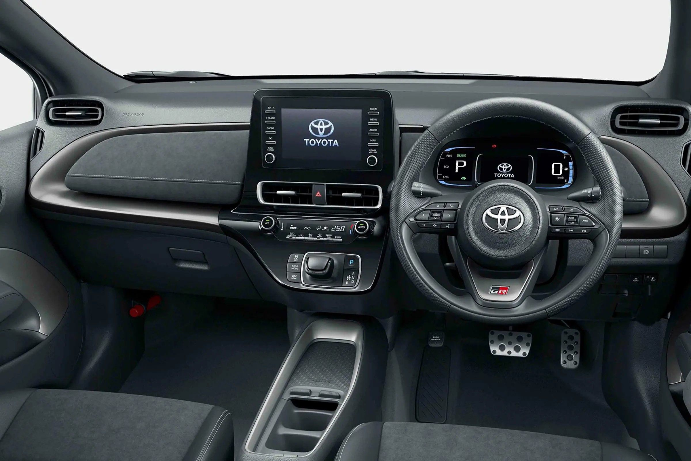 新车在内饰方面并没有太多的改动幅度,整体布局依然维持原样,只不过在此基础上增加了GR SPORT的铭牌标识,例如在三辐式运动方向盘和座椅等内饰覆盖件上,更能体现其AQUA GR SPORT车型的与众不同之处。