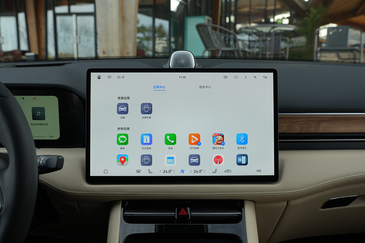 而且华为为这套智能座舱打造了完整的生态,从靠近车辆开的那一刻,一切都开始准备就绪,手机、移动手表都可以跟车载系统无缝衔接,注意,是真正的“无缝衔接”,尤其是超级桌面系统。举个具体场景,一般来说上车听音乐需要手机链接车机,然后车机选择媒体源,最后才可以播放,这个过程之中用户需要分别操作手机、车机多次,而问界可以做到上车机、手机瞬间同步,包括会员信息、正在播放的音乐列表等。