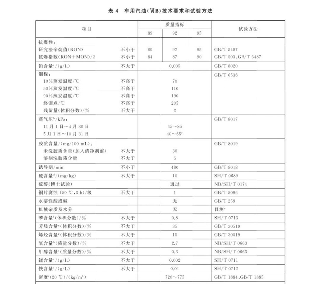 至于普通汽油嘛,根据国家标准GB 17930-2016,国6B汽油与国6B汽油在技术要求中最大的成分区别就在于“烯烃含量”。
