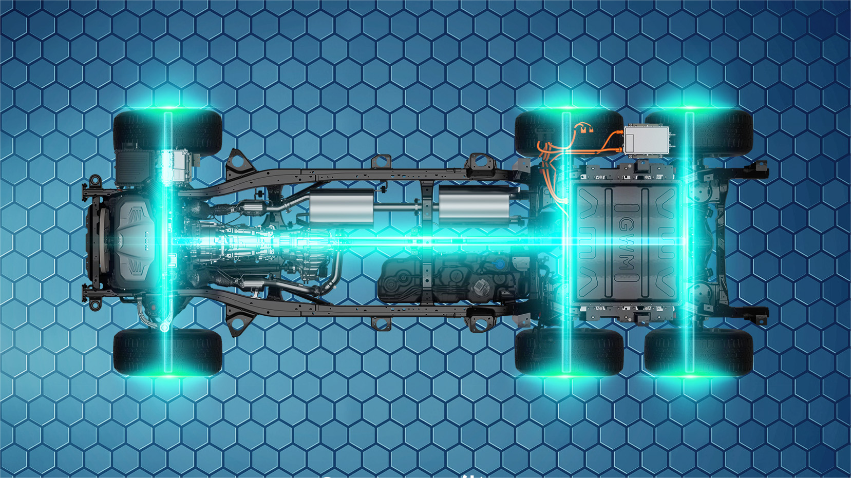 动力性能方面,CYBERP!CKUP提供了相当丰富的动力组合,它将匹配长城3.0T双涡轮增压发动机搭配P2电机的混动系统,最大功率达到了380kW,最大扭矩高达750N·m。