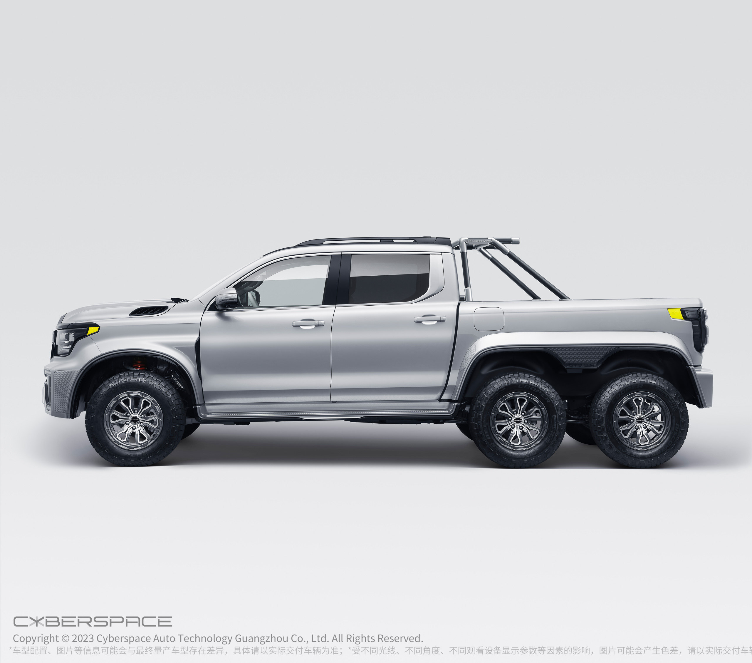 据了解,CYBERP!CKUP是一款基于长城山海炮6X6打造的全新车型,也是超境汽车和长城汽车联手打造的第三款个性定制化车型。