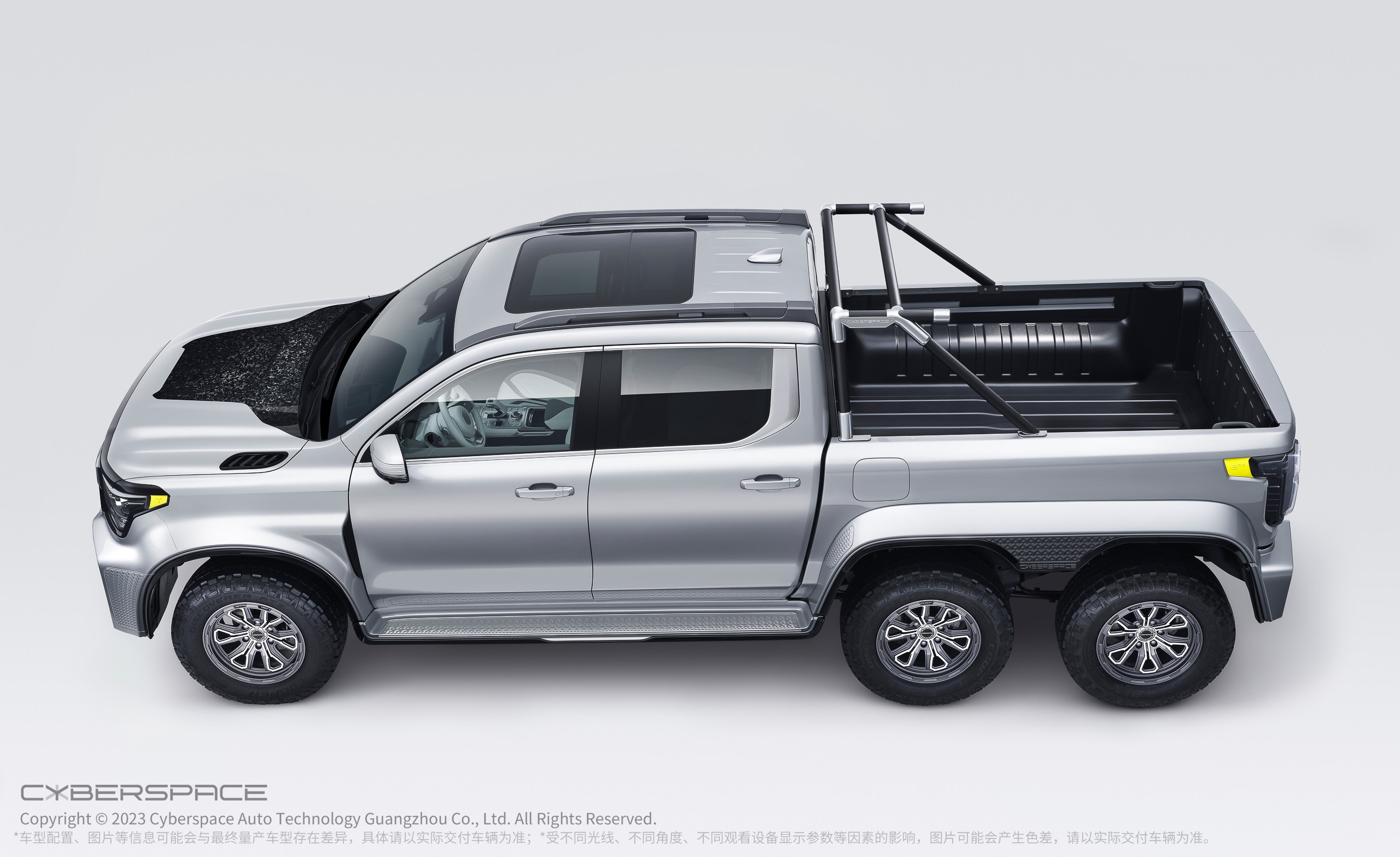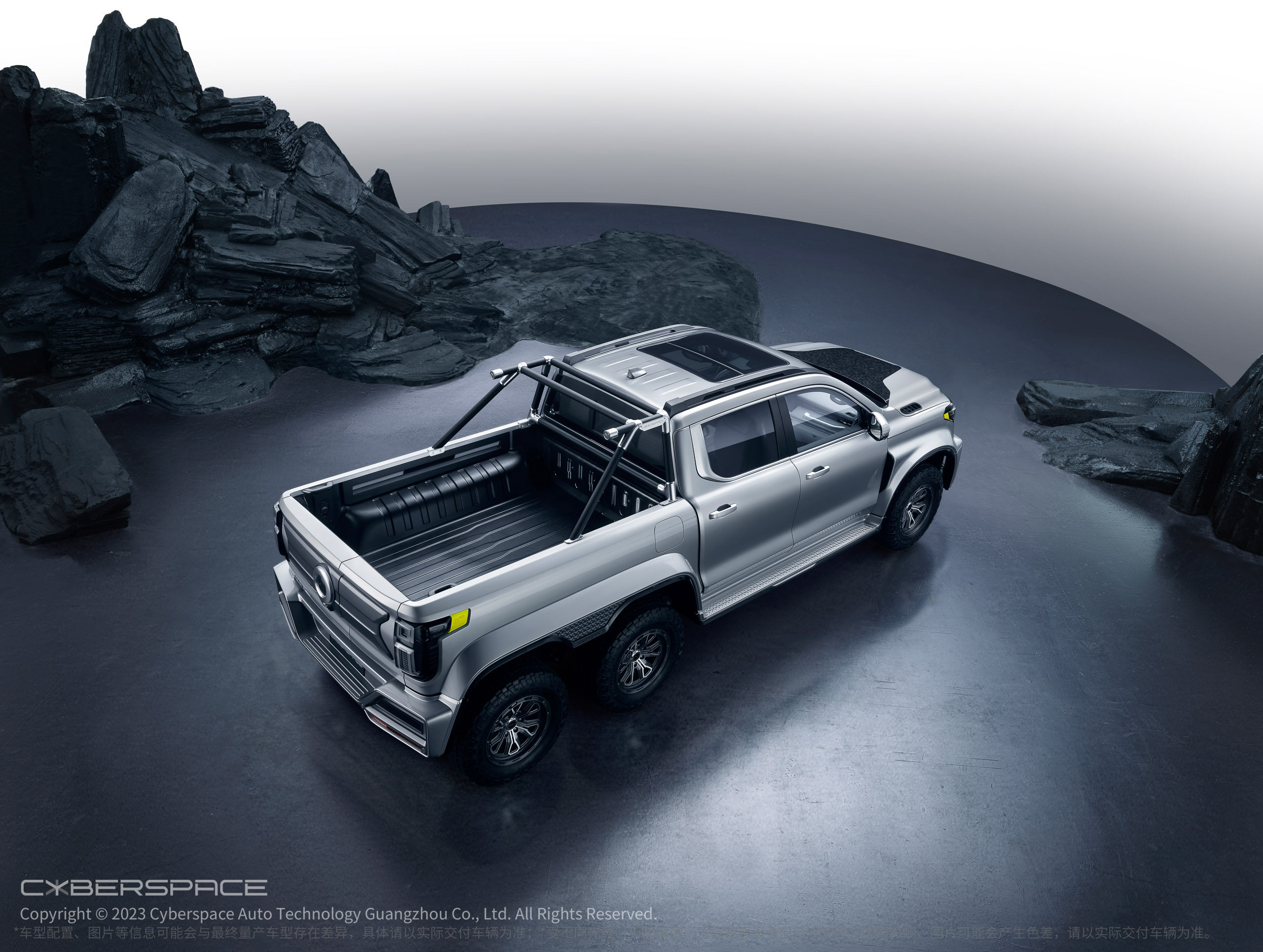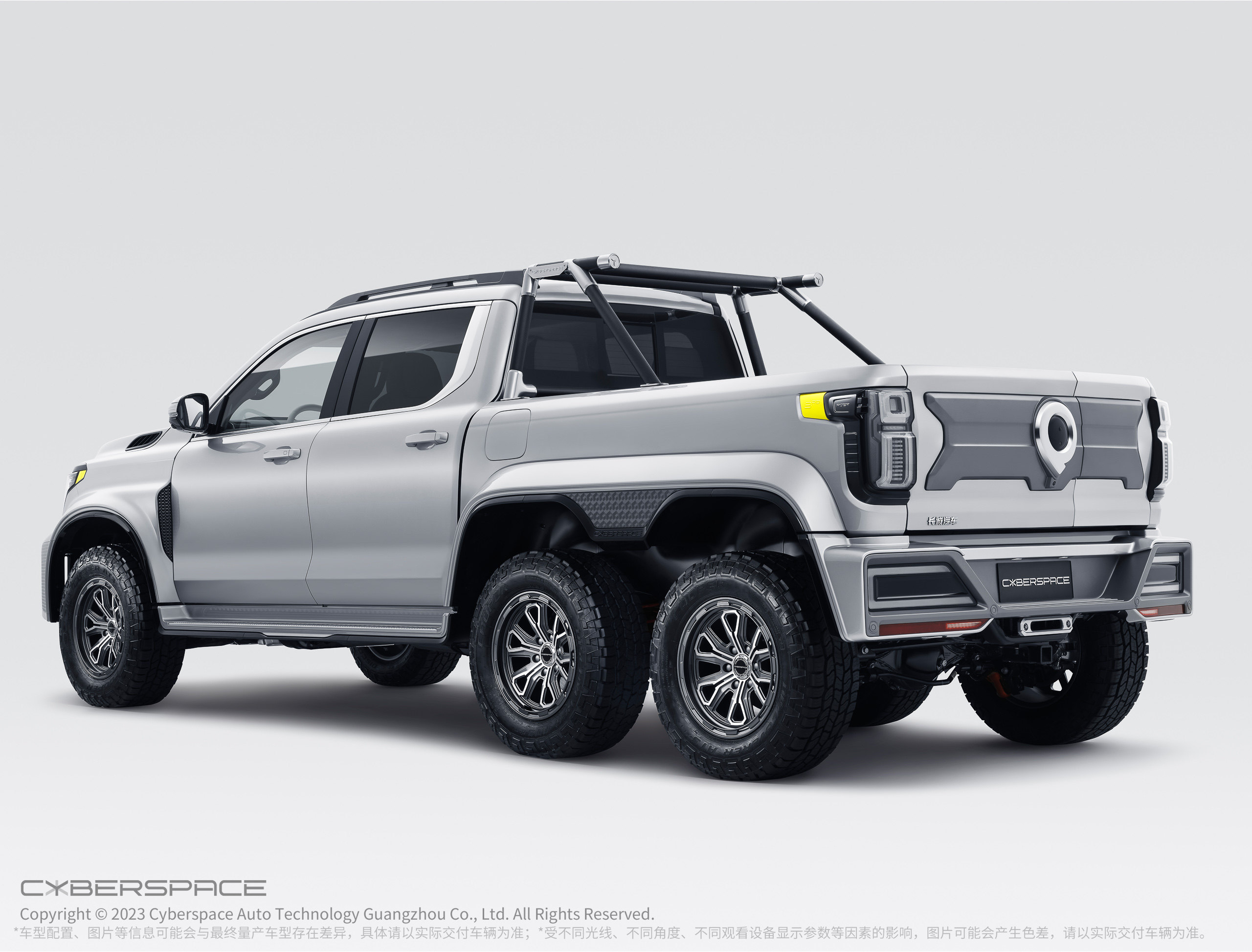 基于长城炮6x6超级越野平台打造的CYBERP!CKUP还有着堪称无敌的越野性能,它拥有“全地形、超级动力、无限拓展”三大黑科技。