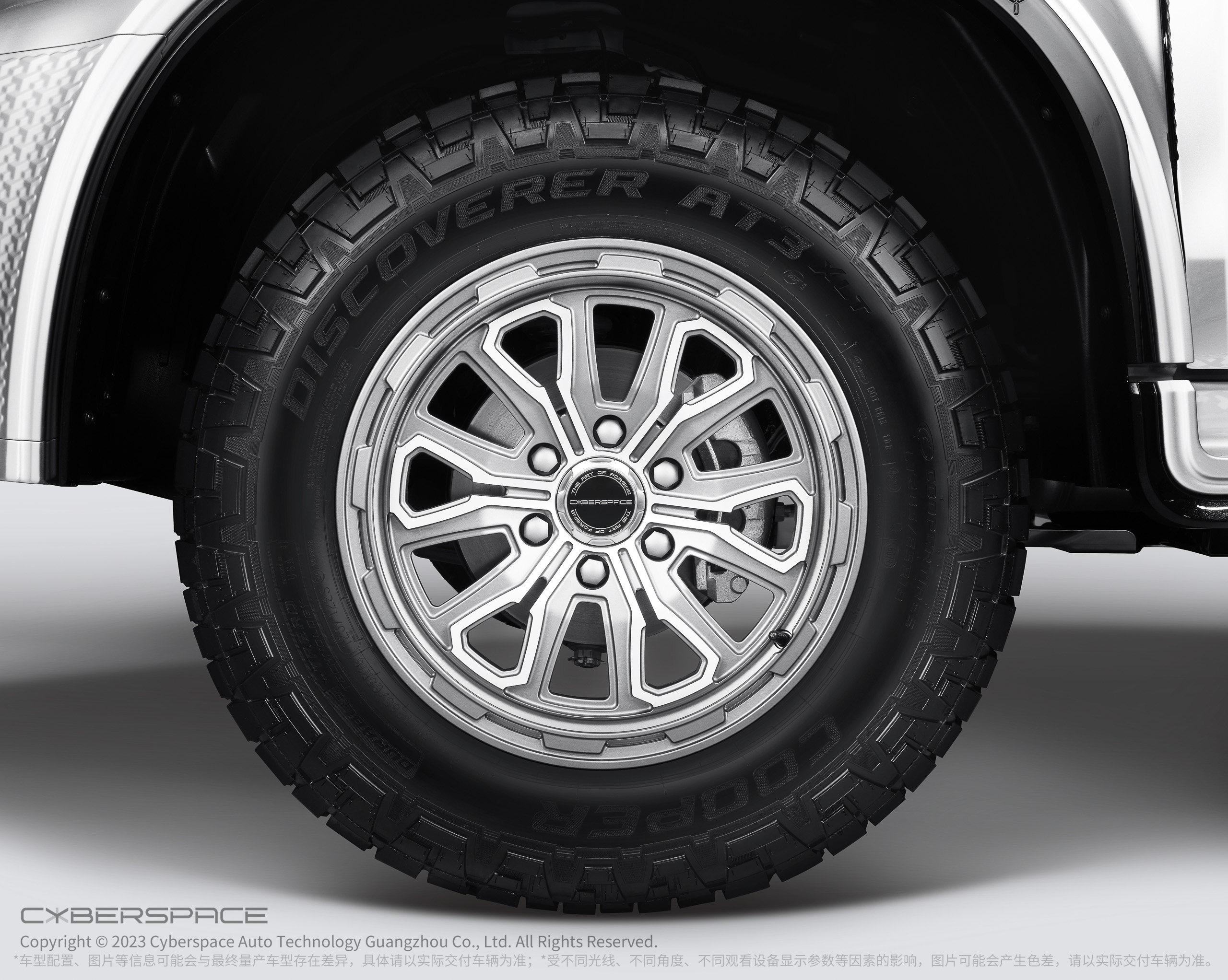 CYBERP!CKUP的6轮布局也就意味着它比其它车型有着更大的轮胎接地面积。更大的轮胎接地面积不仅可以让强大的动力发挥得更加充分,其垂直越障能力也将得到大幅提升,能够更好地适应更多的极端越野路况。