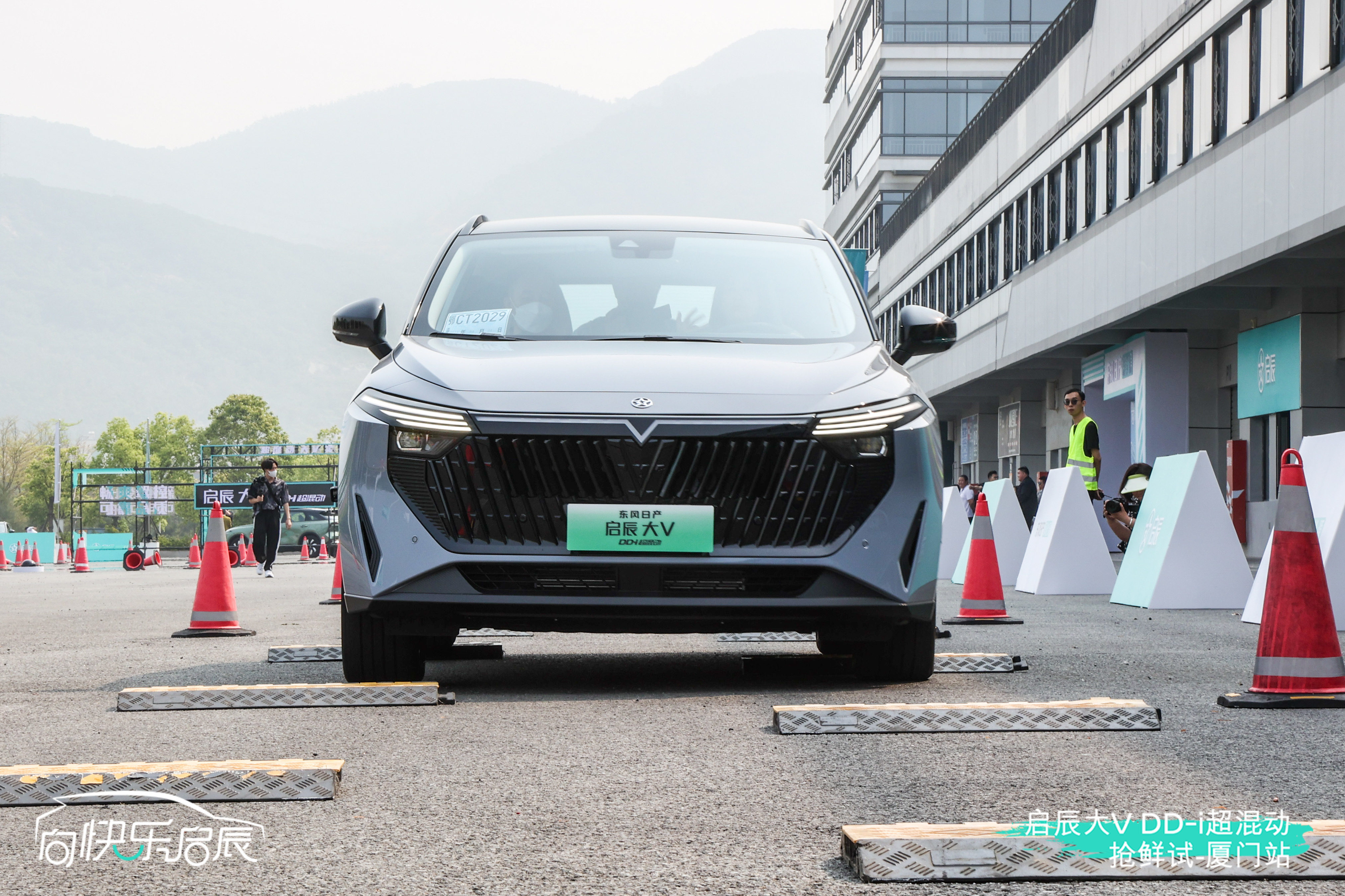 在场地试驾环节中,教授体验了启辰大V DD-i的0-100km/h直线加速、麋鹿测试,以及用交错减速带来模拟的颠簸路段。