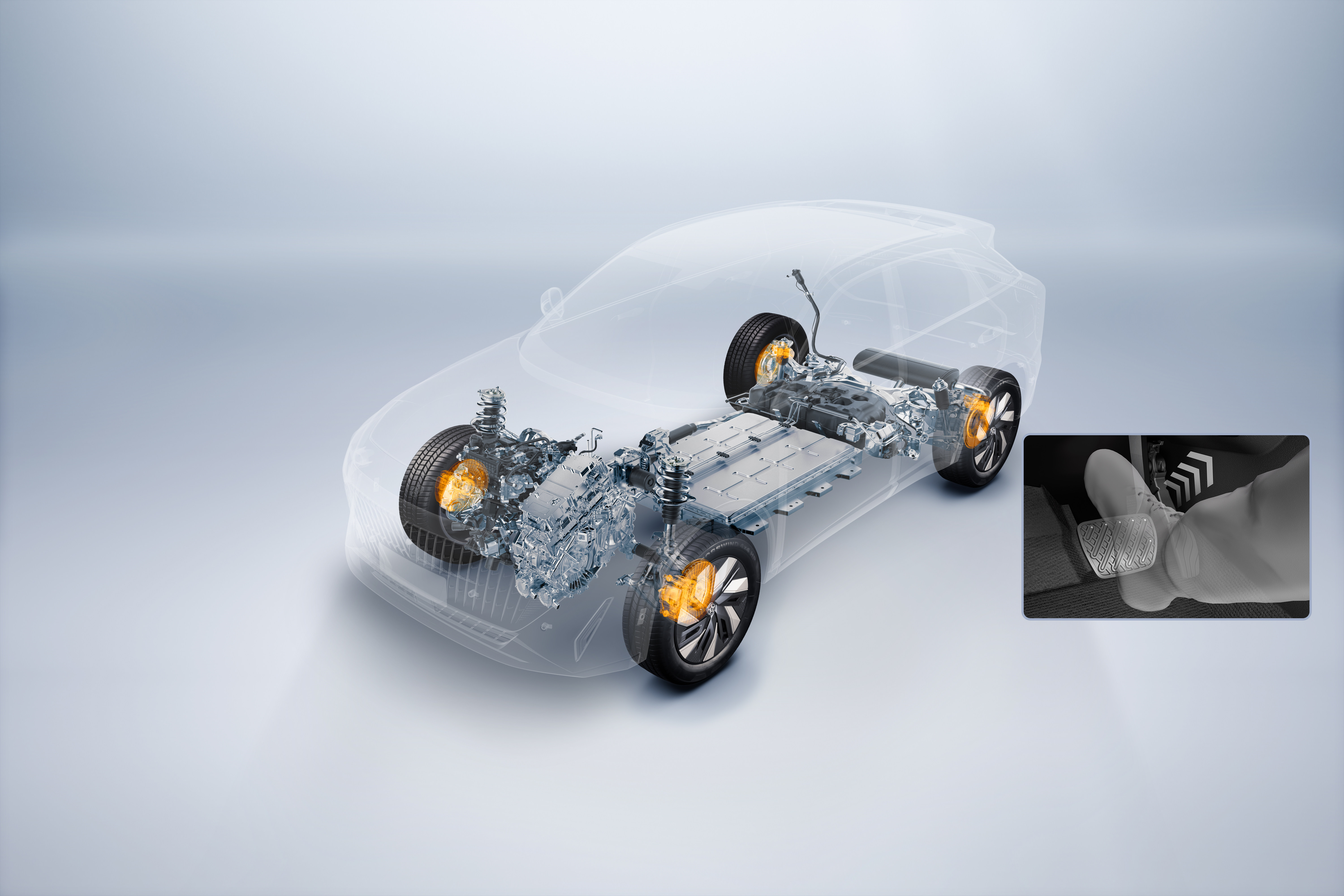而刹车还提供了舒适模式,当用相同的力度踩下刹车时,舒适模式的制动力会更强,且车辆在即将停稳时,系统会自动帮驾驶员调整刹车力,避免车身出现“点头”现象。