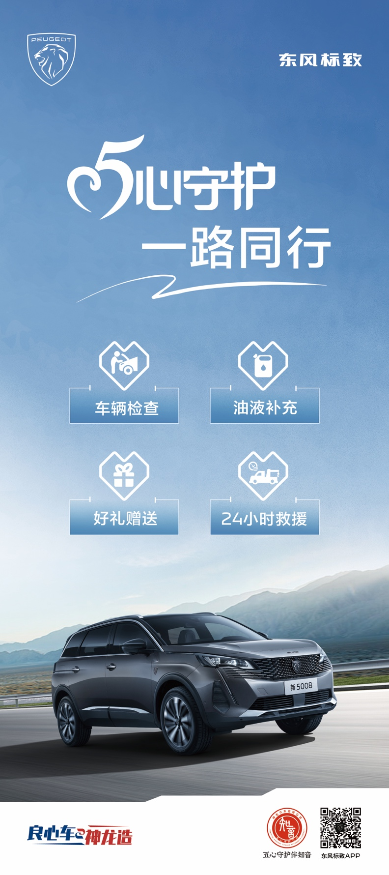此次活动以“五心守护 一路同行”为主题,东风标致将投入真金白银,联合全国近百家经销商,坚守全国数十个高速服务区和旅游景区,为途经的车主提供免费的车辆检查、免费的油液补充,更有关爱礼品相赠,给过往的车主一份安心守护,让车主们无忧出行,一路好心情。