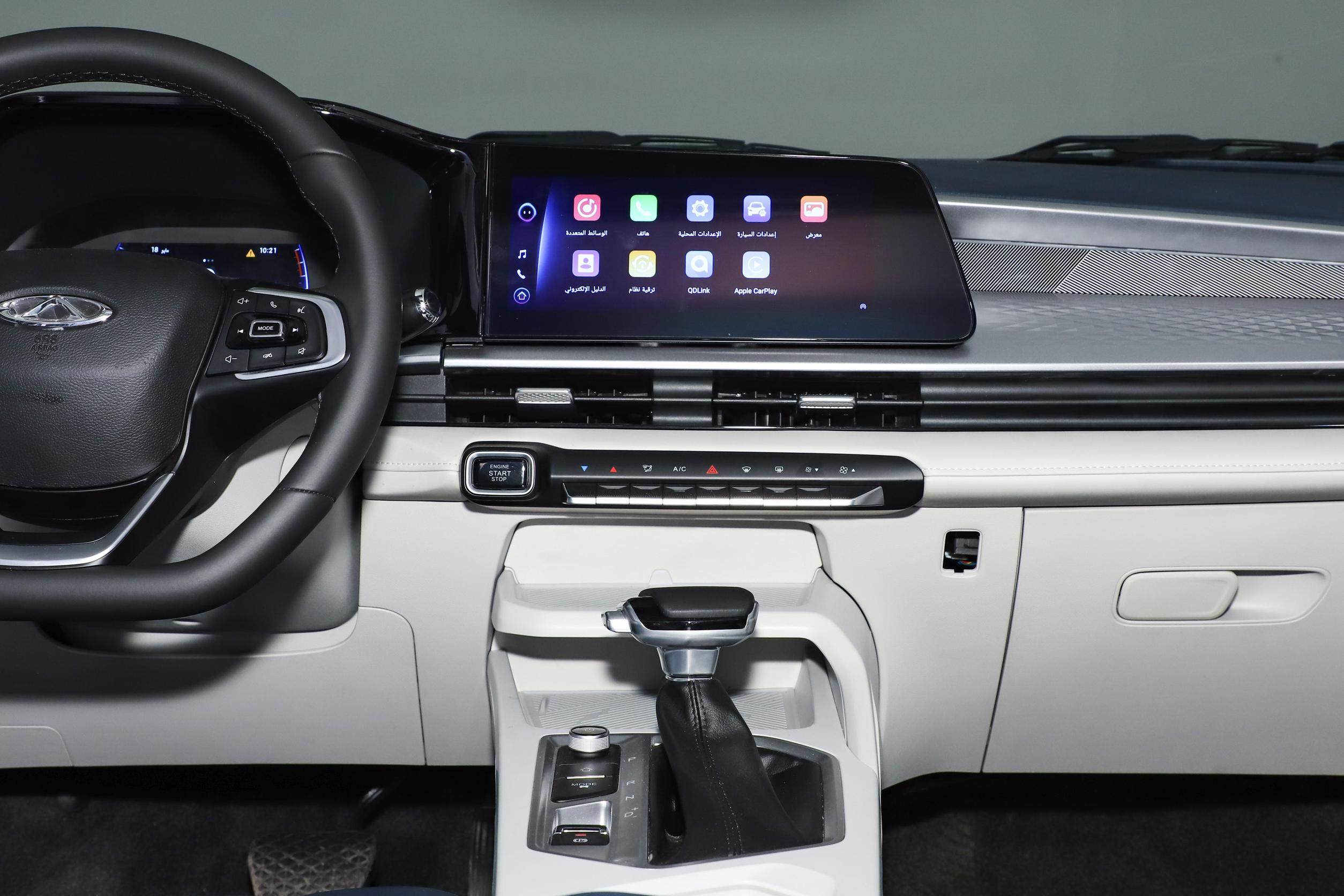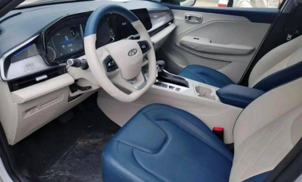 内饰方面,整个中控台比瑞虎3x看上去更时尚,其采用更具层次感的设计,并且包含银色的装饰,中控屏悬浮于中控台之上,系统内的文字采用阿拉伯文标注,意味着这款车还将出口海外。仪表盘包含大尺寸的液晶屏。车辆座椅采用双色的设计,充满时尚感。