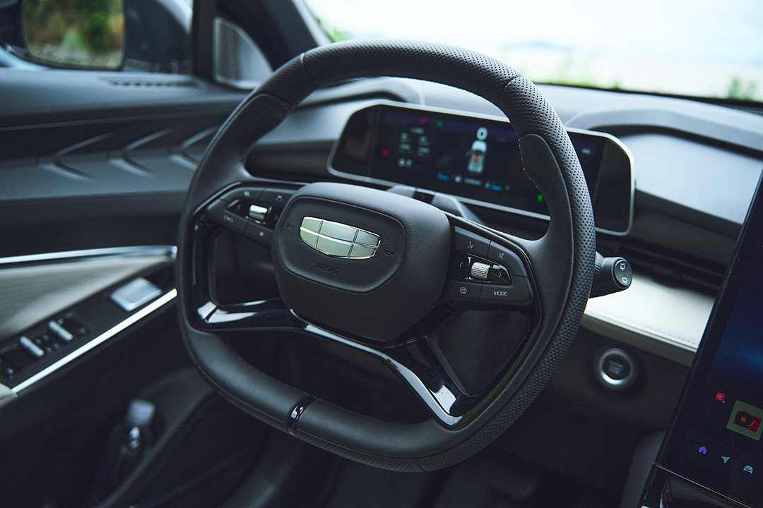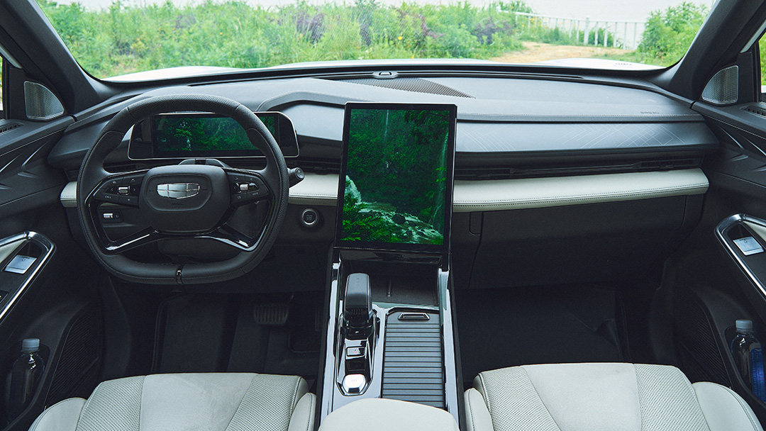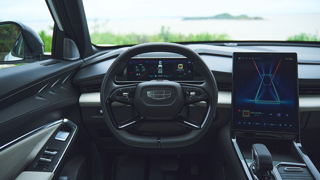 而在车厢内部,内饰设计也同样采用了许多来自博越L的元素,比如同款四辐式方向盘、垂直布置的悬浮中控娱乐屏。