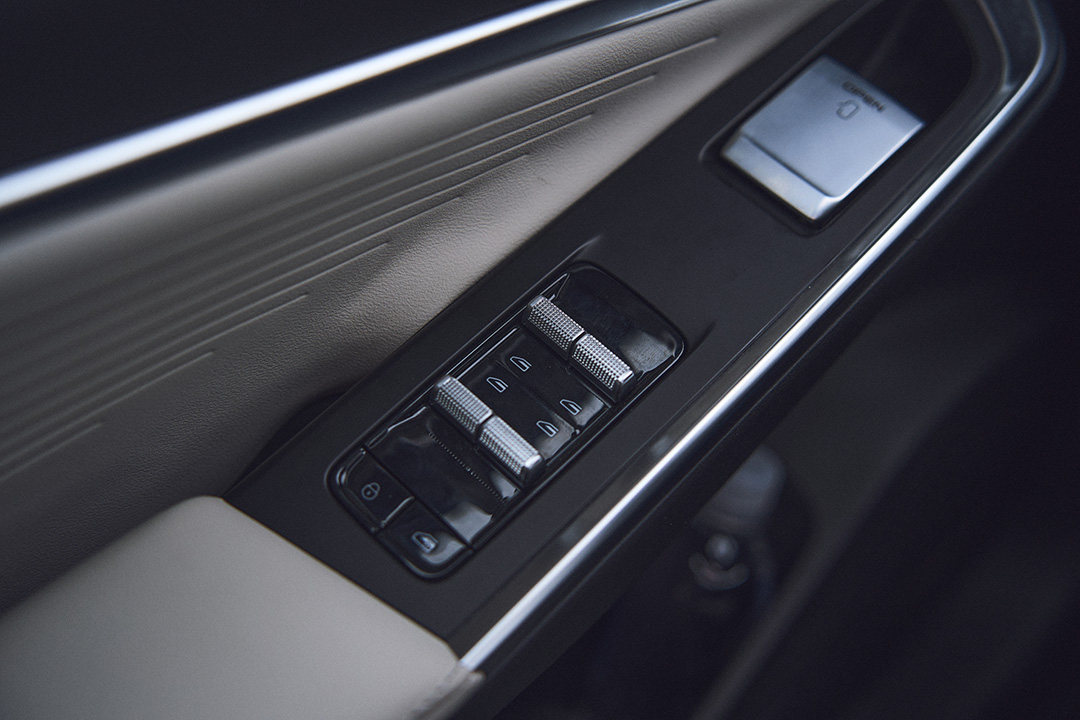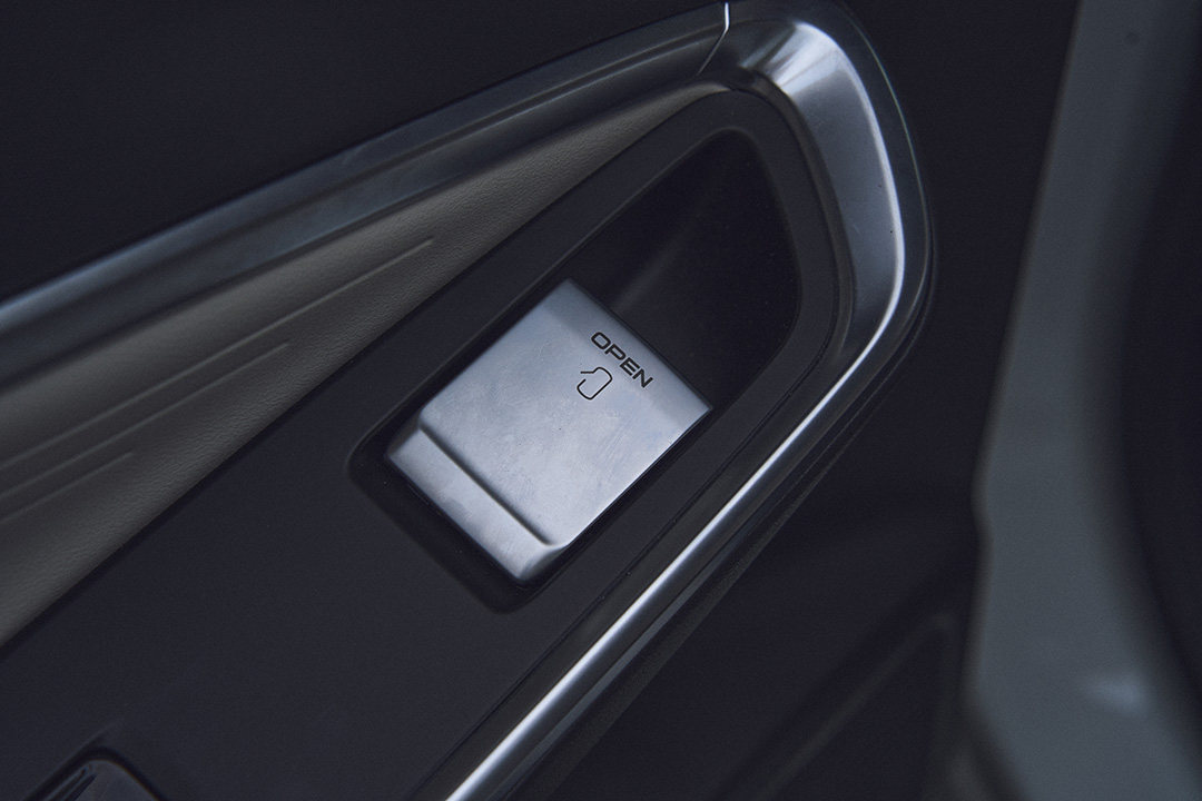 不过这种科技化设计也带来了一些“小问题”。首先车窗控制按键的操作逻辑与大家普遍认知的控制方式相反,向前推动是降下车窗,向后拨则是升起车窗。