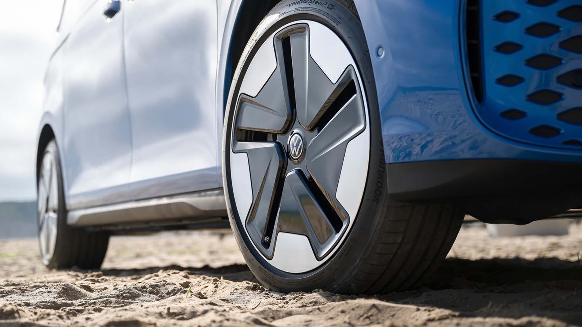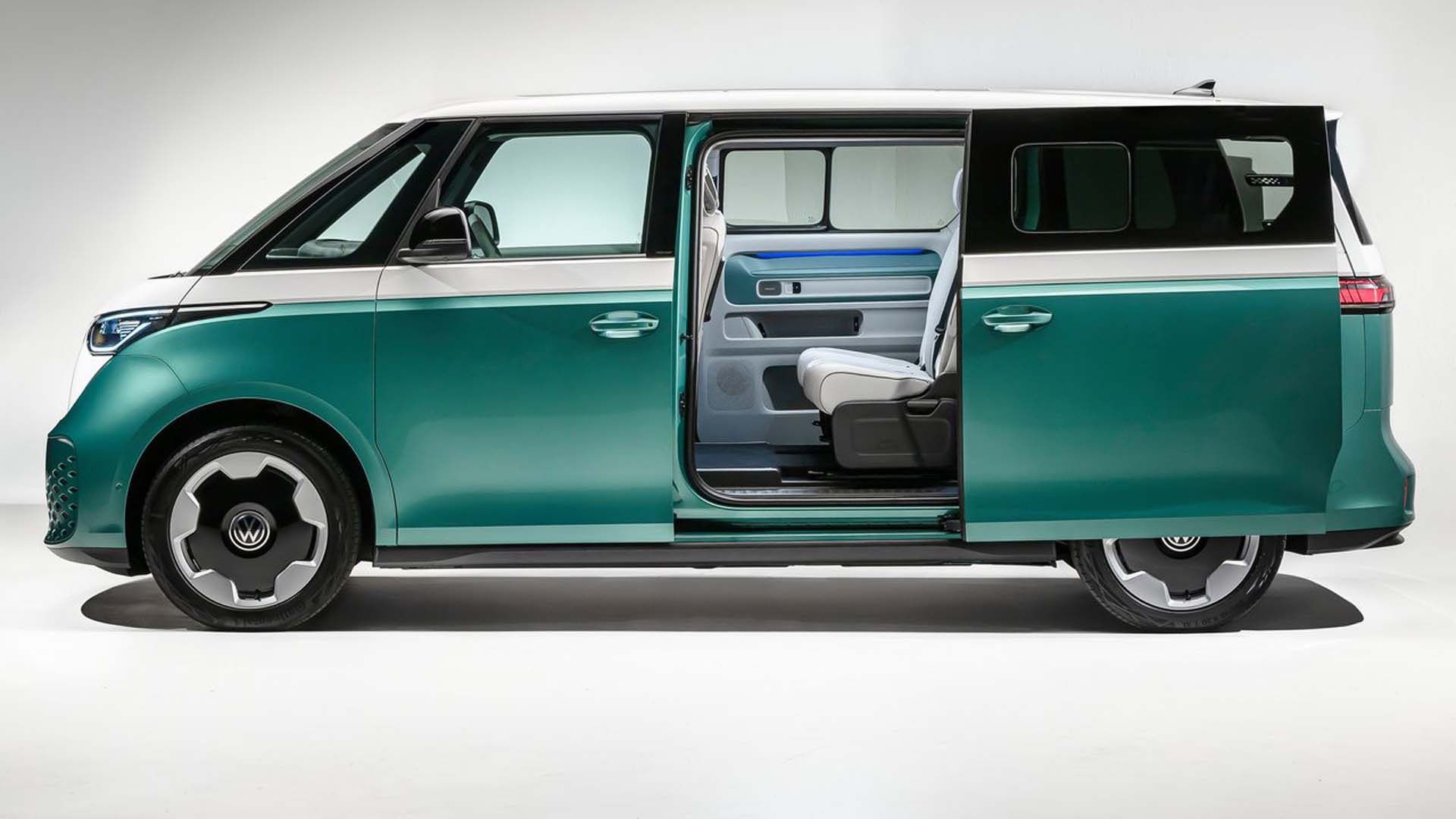 两边配备的都是电动侧滑门,在D柱上还有三段特殊的饰条,还有大尺寸双拼色五辐式花瓣轮毂。车尾设计平常但是绝对不俗,巨大的电动掀背式尾门,与前脸一样的大尺寸大众LOGO,下方还有ID. Buzz的标识。这些顺应潮流设计搭配上复古元素,凸显时尚感的同时也别有一番风味。