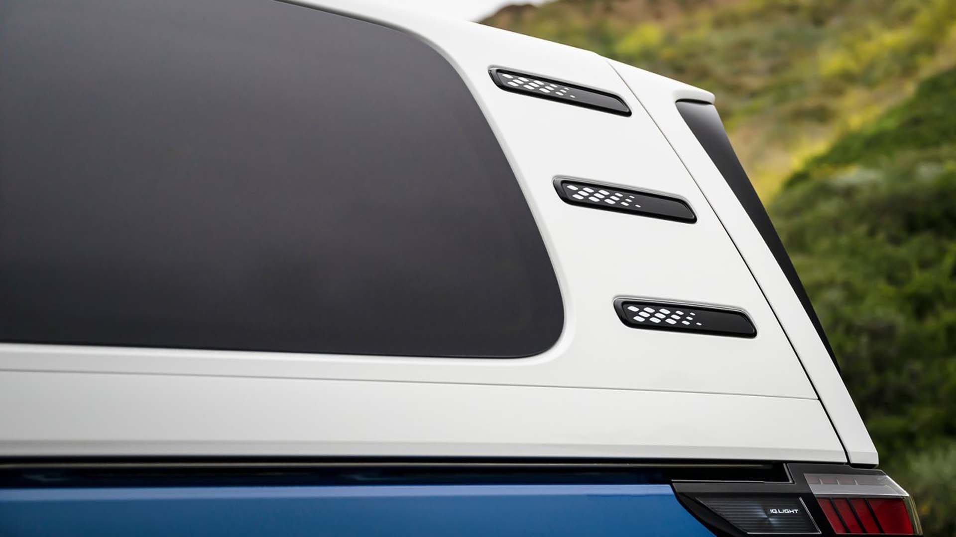 从车身侧面可以看到,ID. Buzz的车身修长,大面积的黑化车窗,标志性的撞色设计,搭配悬浮式车顶。车顶上还有大尺寸天窗,车头两侧为了降低视野盲区,采用了三角车窗的设计,体现这款车的设计十分的细致。