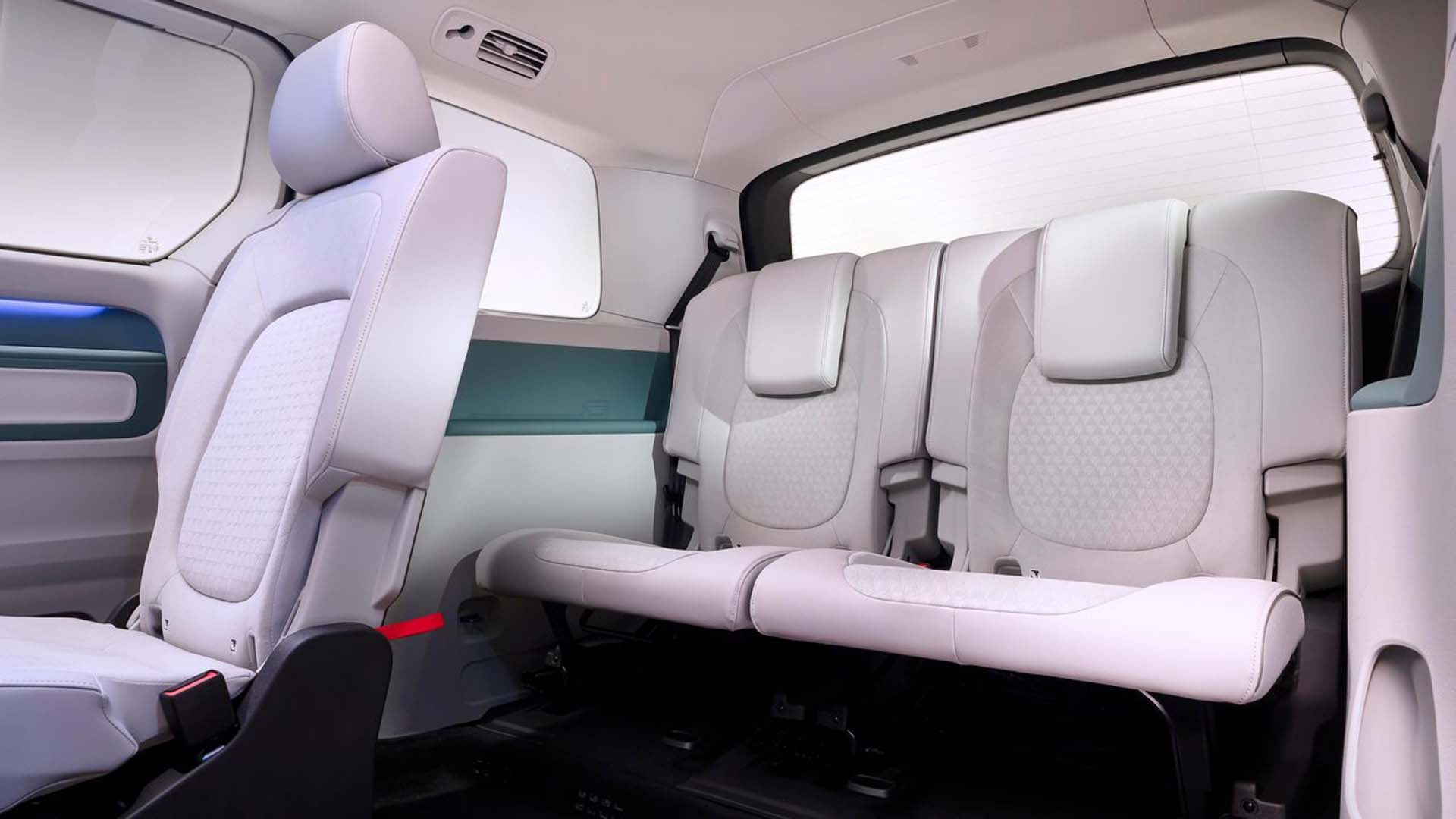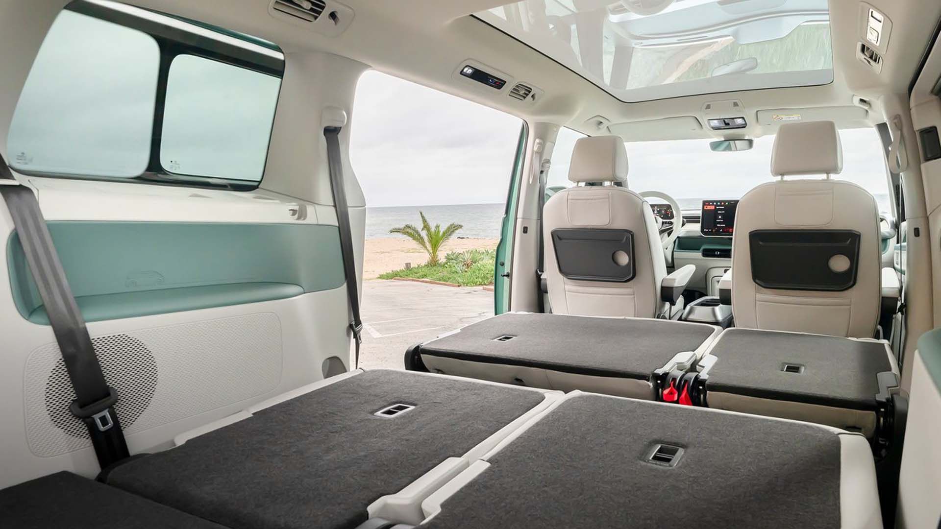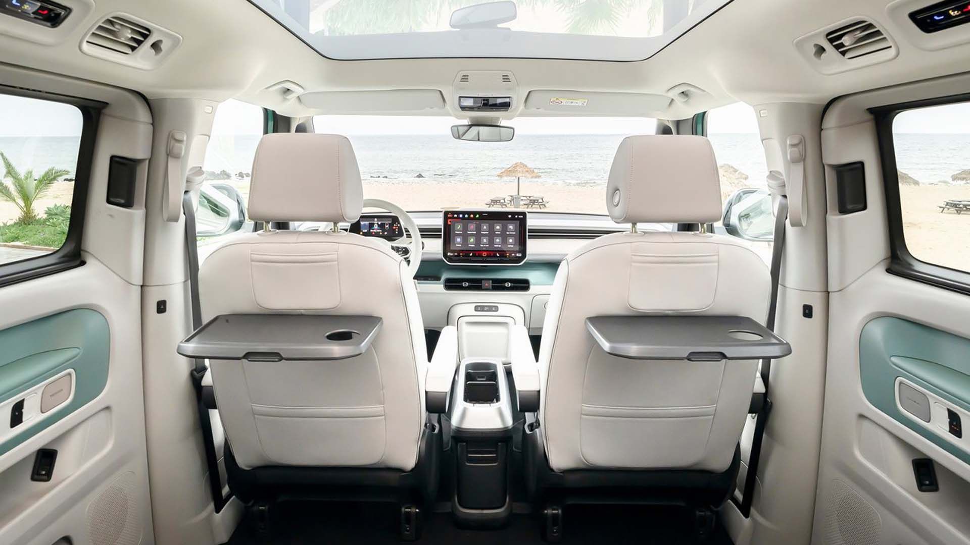 空间方面,新车当然有新改变,长宽高分别为4887*1979*1895mm,轴距升级为3239mm。这种轴距已经比很多中大型商务MPV要大。在前排的中间也采用了MPV常见的贯穿式设计,方便驾驶员和副驾驶变换位置。在座椅配置上,ID. Buzz也是一大特色,可以实现5座、6座、7座的座椅布局,第二排座椅提供了加热功能。并且第二排座椅支持比例放倒,后排座椅折叠放倒,形成纯平的超大车内存储空间,恢复其货运的属性。
