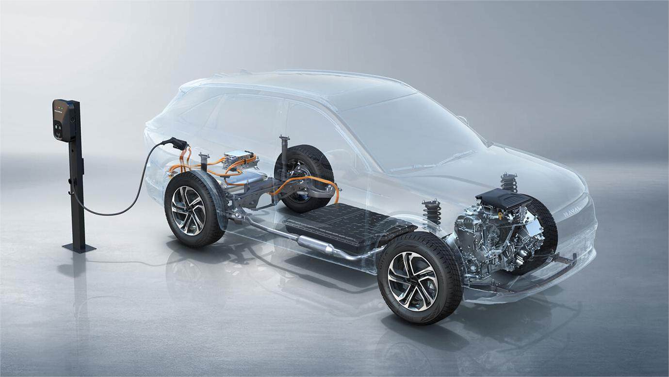 哈弗枭龙搭载的柠檬混动系统由1.5L发动机+2挡DHT变速箱+电机组成。其中,发动机最大功率为74kW,电机总功率为115kW,总扭矩为250N·m,NEDC工况下纯电续航里程为52km。