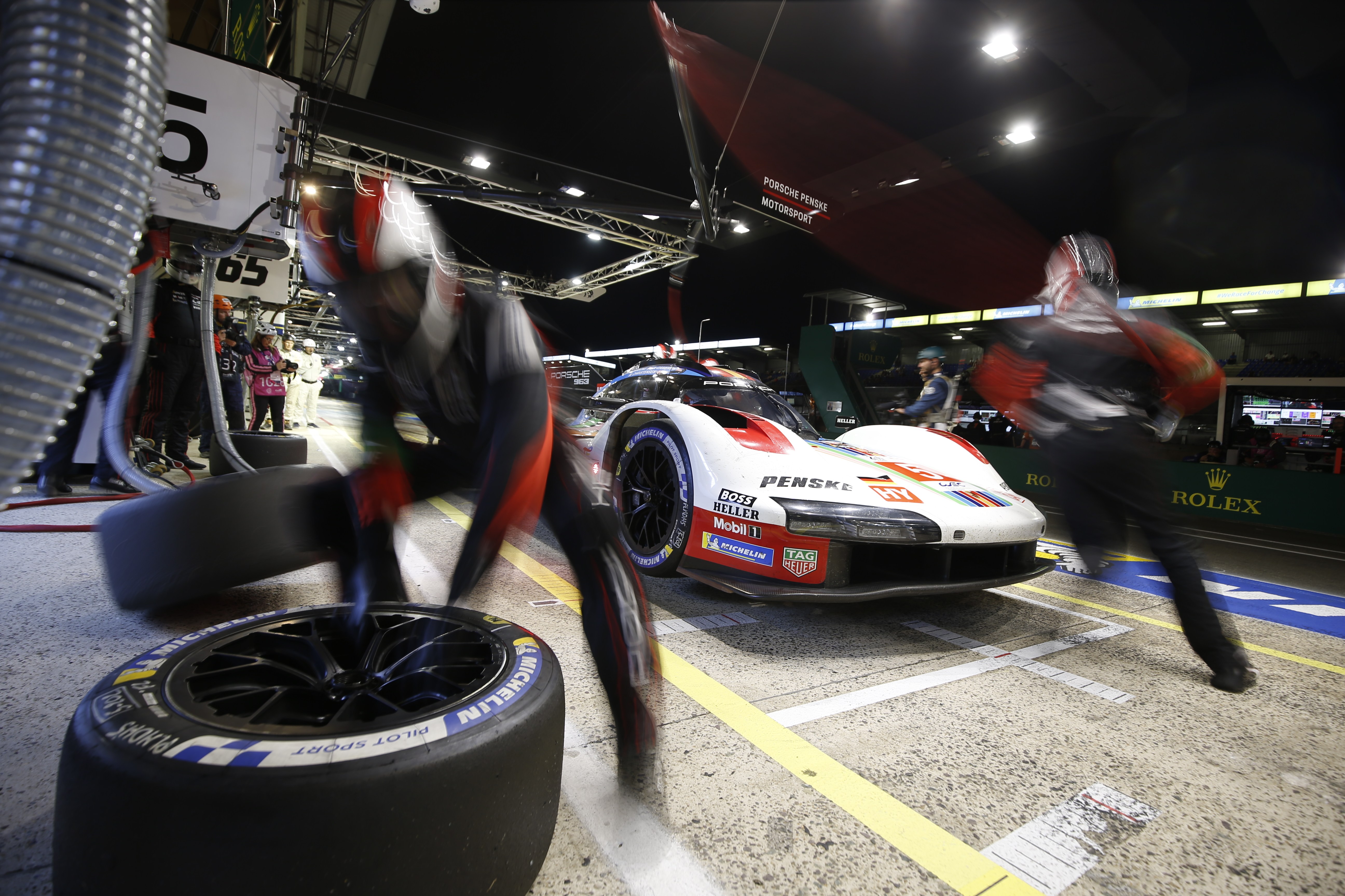 随着周六晚上夜幕降临,保时捷潘世奇车队的第三辆 963 赛车在 16 辆 Hypercar 组别赛车的激烈战斗中吸引了人们的目光。英国车手 Nick Tandy、巴西车手 Felipe Nasr 和来自法国的 Mathieu Jaminet 共同驾驶的混合动力赛车领跑了很多圈。为了纪念保时捷 75 周年,该车的编号为 75 号。然而,在勒芒的晚上 10 点 44 分,厄运降临:Jaminet 失去动力停在了赛道上。燃油压力的缺失使得他无法继续比赛,这似乎预示着这支车队将提前结束比赛。