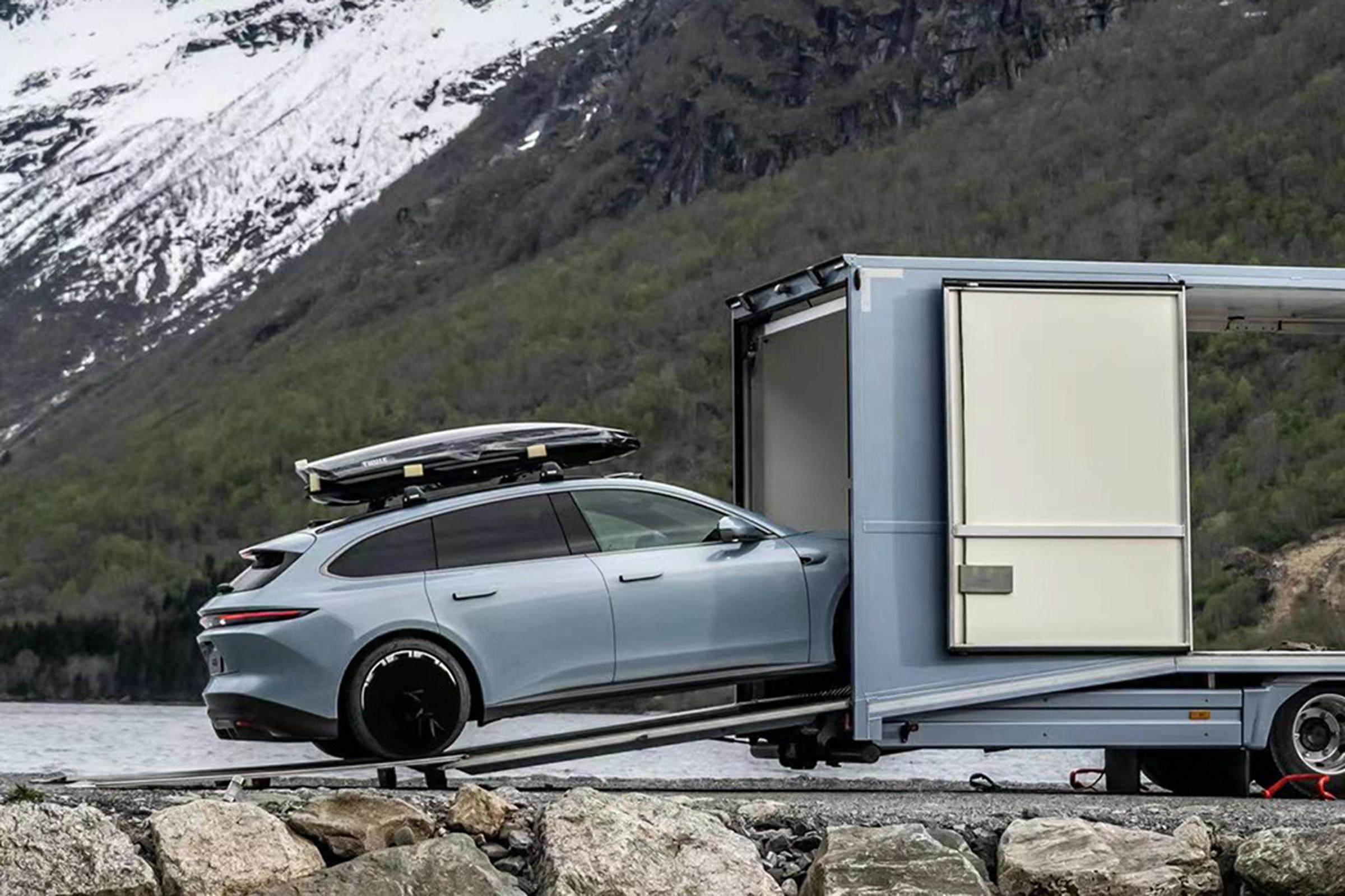 值得一提的是,ET5旅行版车型还配备了后雨刷,并可选车顶行李架以及拖挂套装,其中拖挂套装包含拖挂模式和隐藏式电动拖车钩,最大牵引总质量为1.4吨,更加契合旅行车的身份和用途。