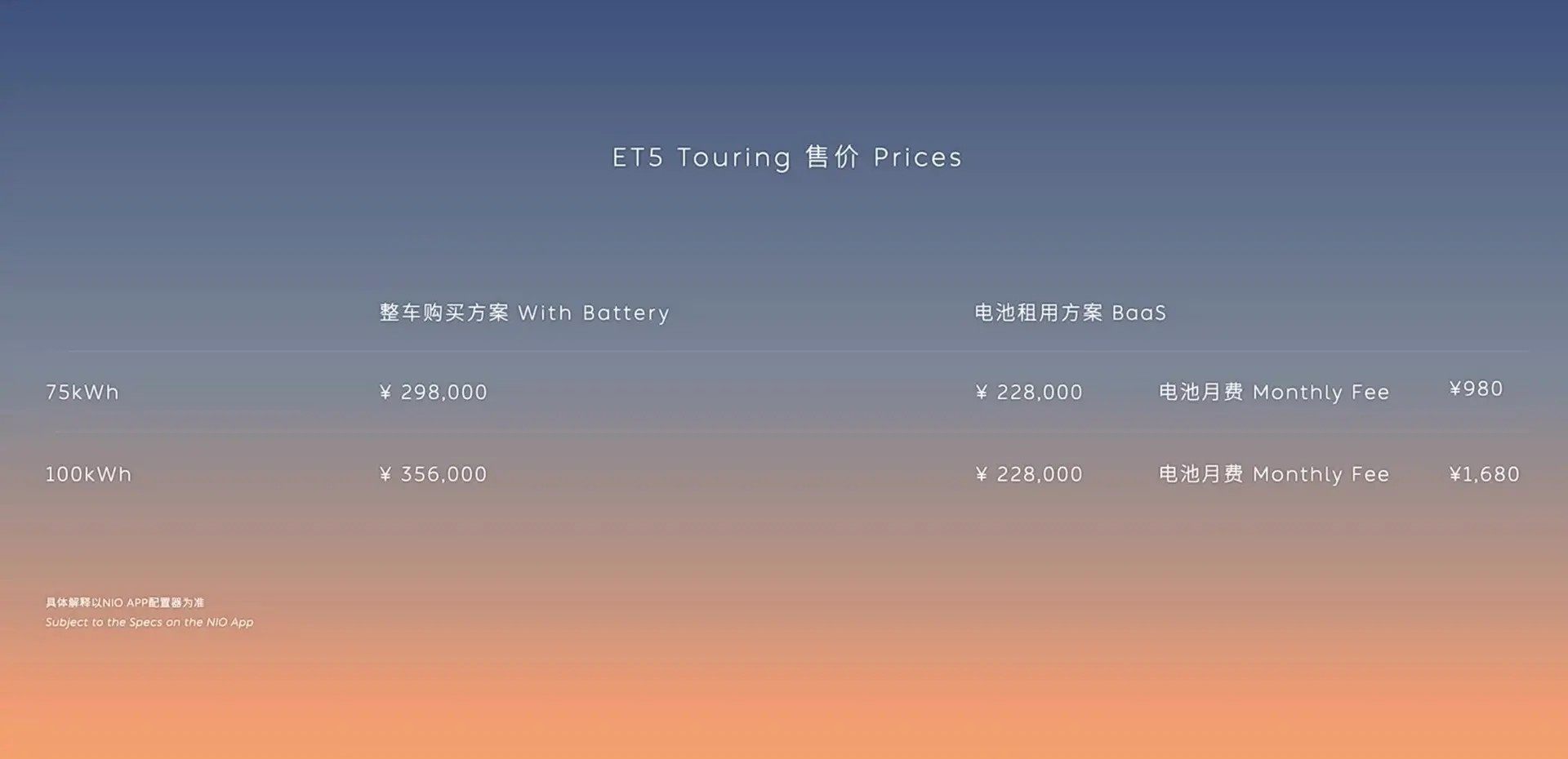 值得一提的是,蔚来ET5旅行版如果采用BasS方案购买的话,其起售价便会缩减至22.8万元,性价比似乎要更高。