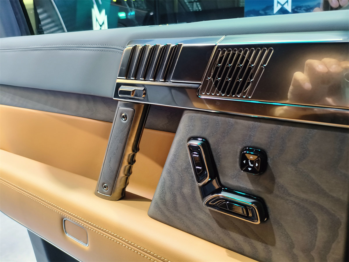 而不管是座椅还是门板这些手能摸到的地方,包覆皮也全都是头层牛皮,这就让这台车在皮料质感上,有了超越很多百万级豪车的资本。而哪怕是在车门车窗开关这些一般车会忽视的小细节上,猛士917也花了大价钱,用不锈钢(还用了拉丝工艺)打造。可以说,猛士917的整个内饰,无论是花的心思还是花的成本,都很有诚意。
