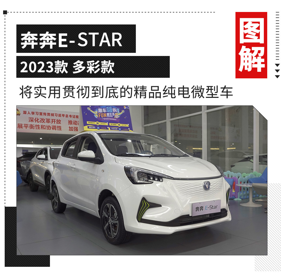 这款车型就是长安奔奔E-STAR,它如今也登陆了各大长安欧尚新能源4S店,所以要买可别跑错地了~今天我们实拍的是售价7.99万的2023款 多彩款。