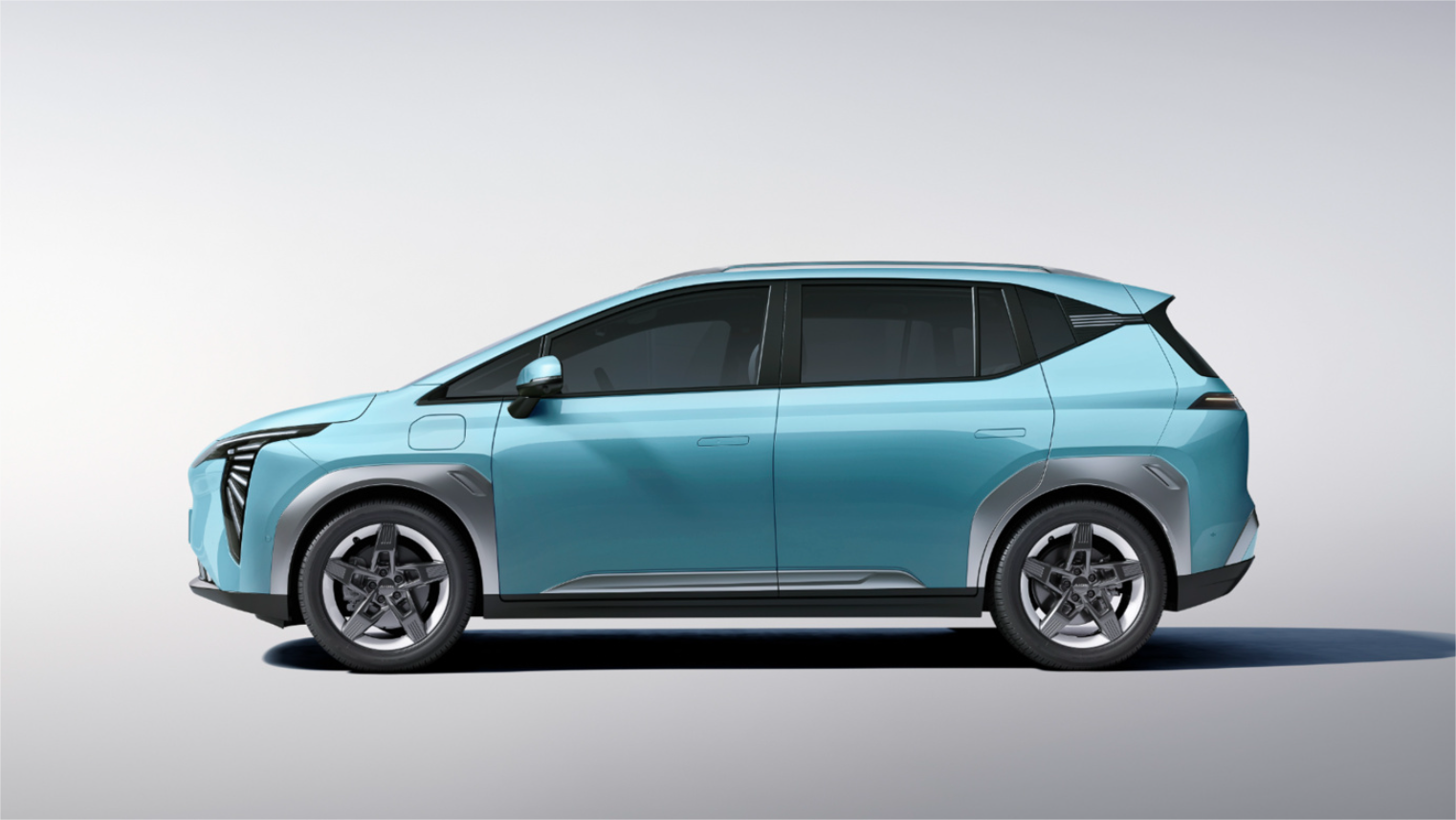 AION Y Younger星耀版的车身侧面整体趋向于简洁科幻的设计风格。具体来看,贯穿前后车门并且一直延伸到车尾的平直腰线和隐藏式门把手都没有太多繁杂的设计,而车身下部拼色设计的轮拱以及车门护板又显现出了更加未来的机甲科幻元素。