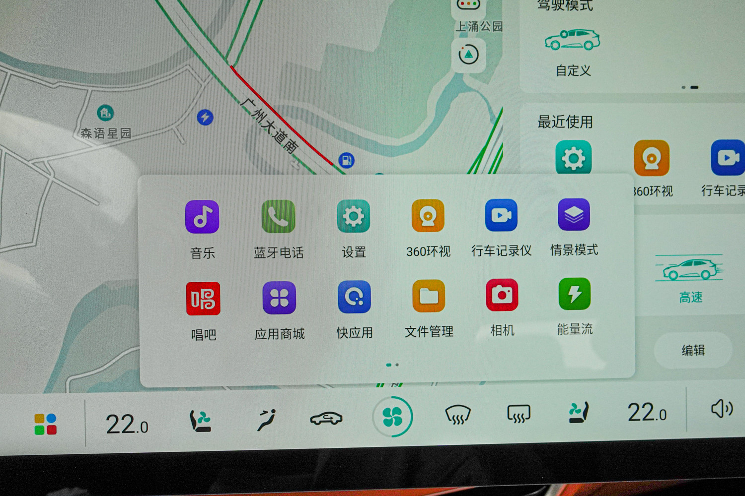 屏幕左侧提供车辆信息、驾驶模式、最近使用历史、以及能量管理等功能,还可以通过编辑功能进行自定义,来满足不同驾驶者的不同使用喜好。
