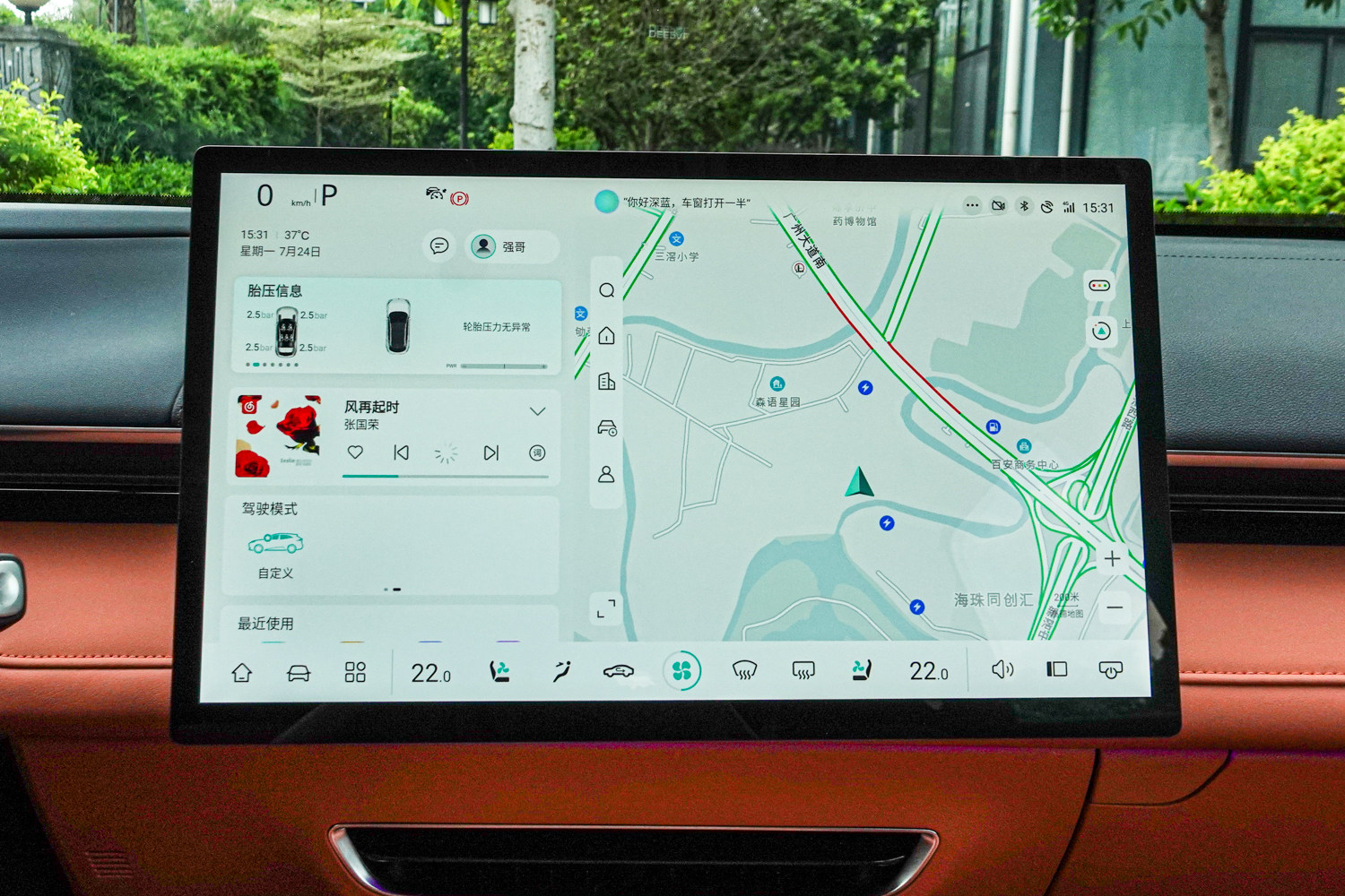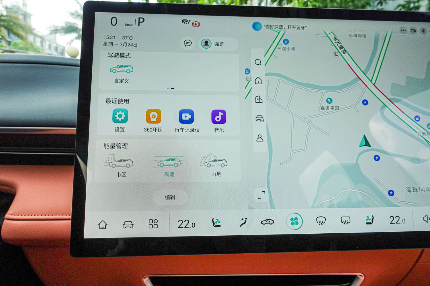 深蓝S7采用的是当下流行的0级界面,能够快速直达日常使用率较高的功能,比如在首页上即可操作导航、空调、音乐等,整体而言便利性是值得肯定的。
