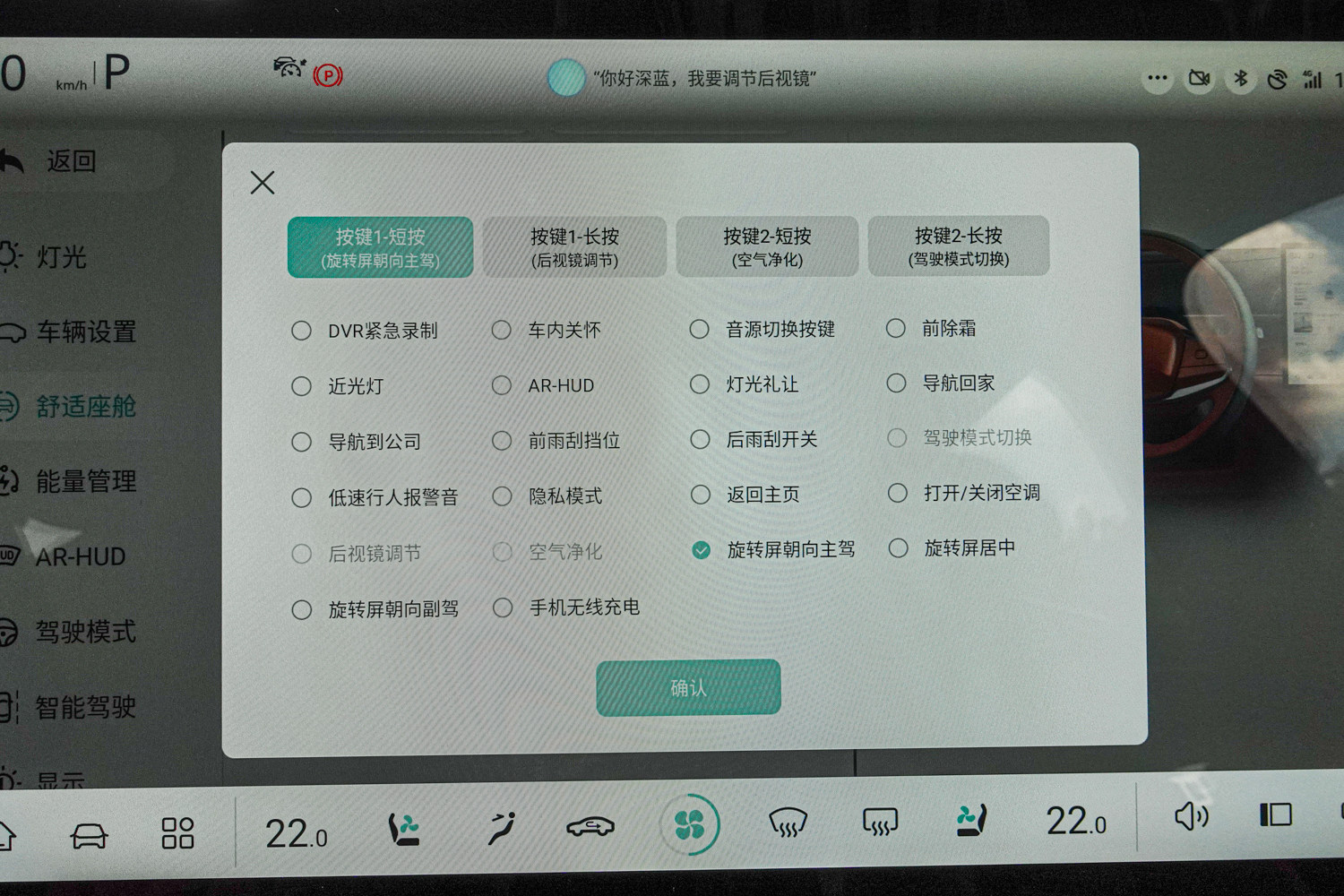 值得一提的是,深蓝S7还提供方向盘自定义按键功能,用户可根据自身使用需求与场景进行自定义设置,将用车便利性进一步提升,也体现了智能科技下的温度。