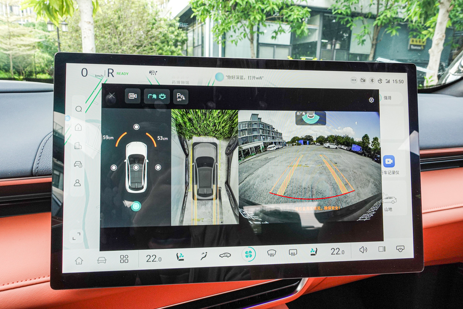 深蓝S7全系标配了透明底盘功能,对于新手车主亦或是在狭窄路段下十分实用,在该模式下还能显示车辆与障碍物之间的距离,从而对路况拥有更清晰的判断。